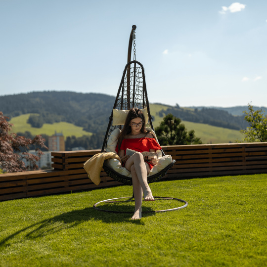 Materiál: ocel / látka / umělý ratan Oděruodolnost textilie podle testu Martindale: 95 000 oděrek Závěsné křeslo Kalea 2 NEW vhodné do exteriéru i interiéru. Barevné provedení: hnědá / krémová Rozměr se stojanem (ŠxHxV): 105x105x195 cm Rozměry křeslo (ŠxHxV): 80x80x128 cm Výška rámu: 195 cm Maximální nosnost 130 kg. V exteriérech doporučujeme křeslo zajistit ochranným potahem nebo plachtou Dodávané s polštáři Před praním je třeba vyjmout náplň a vyprat jen potah Potah je se zipem Snímatelný potah Pratelný při teplotě do 40 °C Nebělte Nesušit v sušičce Nežehlit Nečistěte chemicky Stojan je součástí balení Kování pro závěsné křeslo se nachází přímo v rámu kruhu Dodávané v demontu