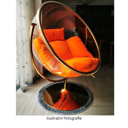 Závěsné křeslo se stojanem, transparentní/zlatá/šedá, BUBBLE NEW TYP 2