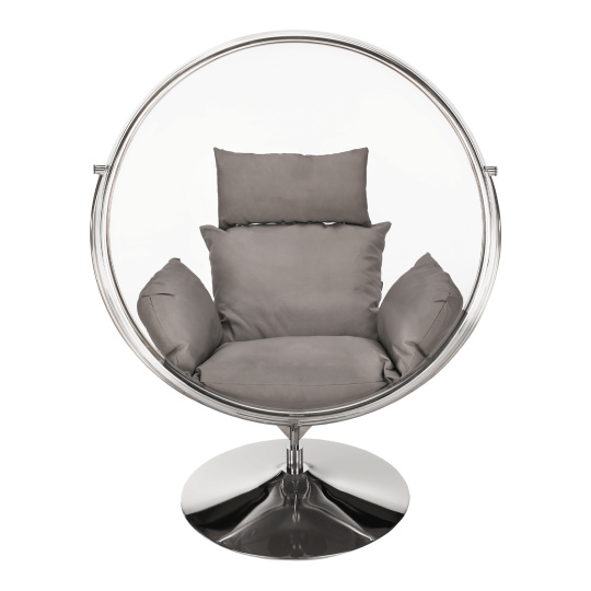 Závesné kreslo so stojanom, transparentná/strieborná/sivá, BUBBLE NEW TYP 2
