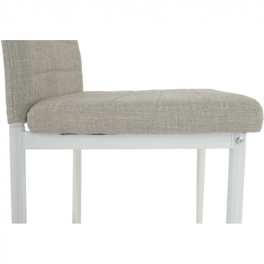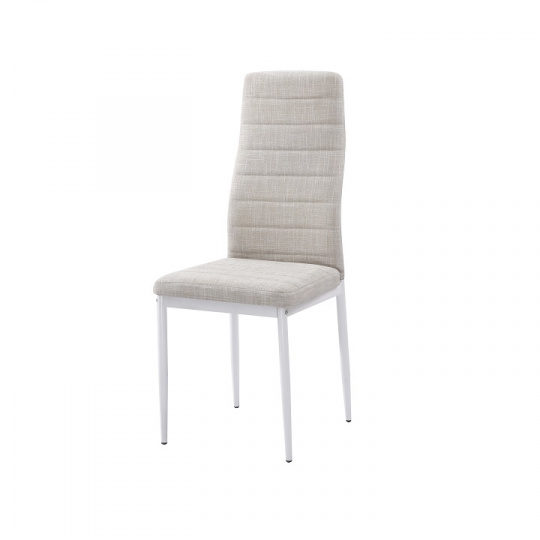 Jídelní židle COLETA NOVA v barevném provedení béžová látka / bílé kovové nohy Oděruodolnost textilie podle testu Martindale: 50 000 oděrek. Rozměry (ŠxHxV): 41x49x96 cm Výška sedu: 45 cm Hloubka sedu: 39 cm Nosnost: 90 kg Dodávané v demontu.
