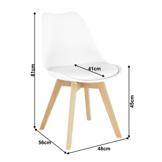 Materiál: dřevo / plast / ekokůže Oděruodolnost textilie podle testu Martindale: 100 000 oděrek Barva: buk / bílá Rozměry (ŠxHxV): 48x54x80 cm Výška sedu: 46 cm Hloubka sedu: 42 cm Extra měkké sezení Nosnost: 110 kg Dodávané v demontu