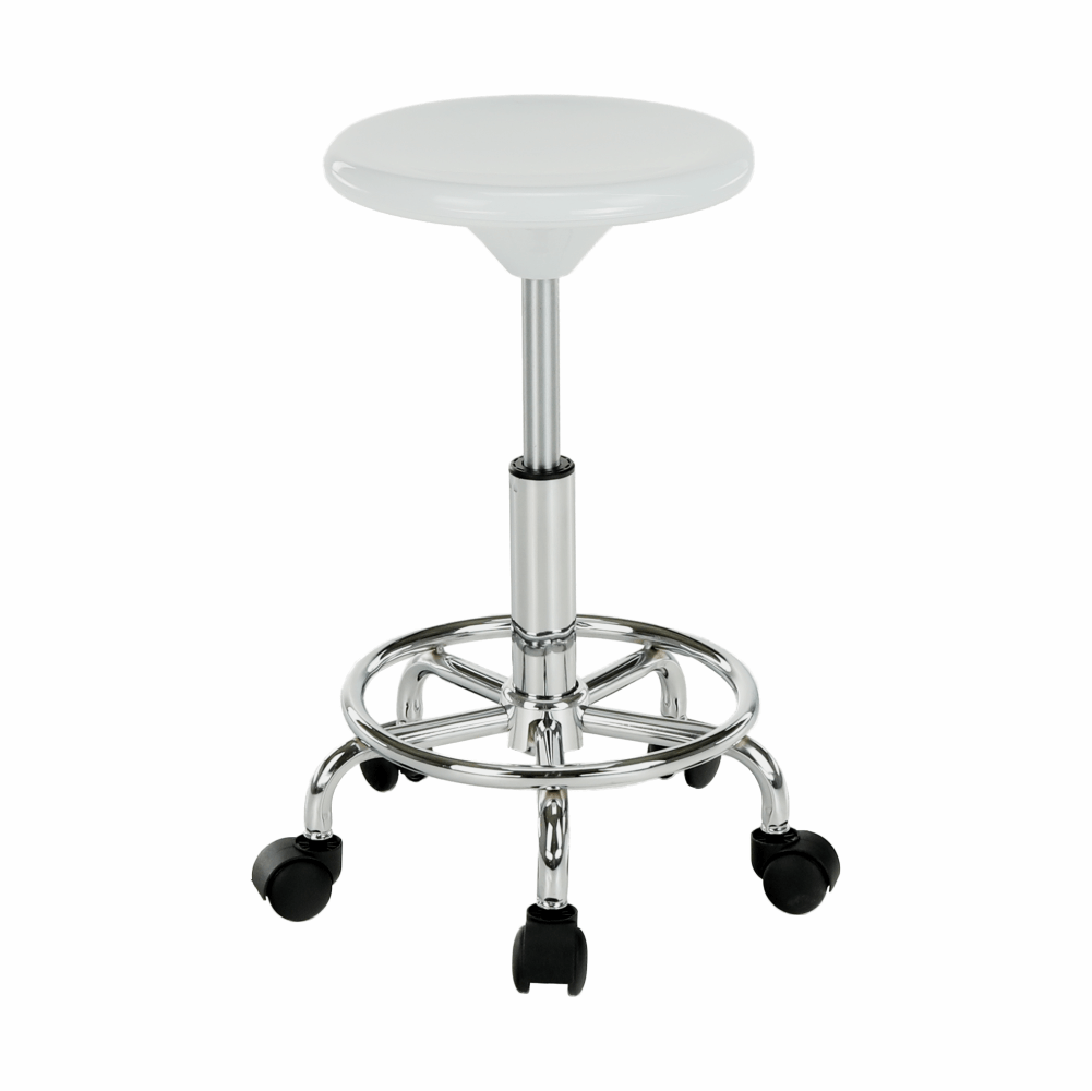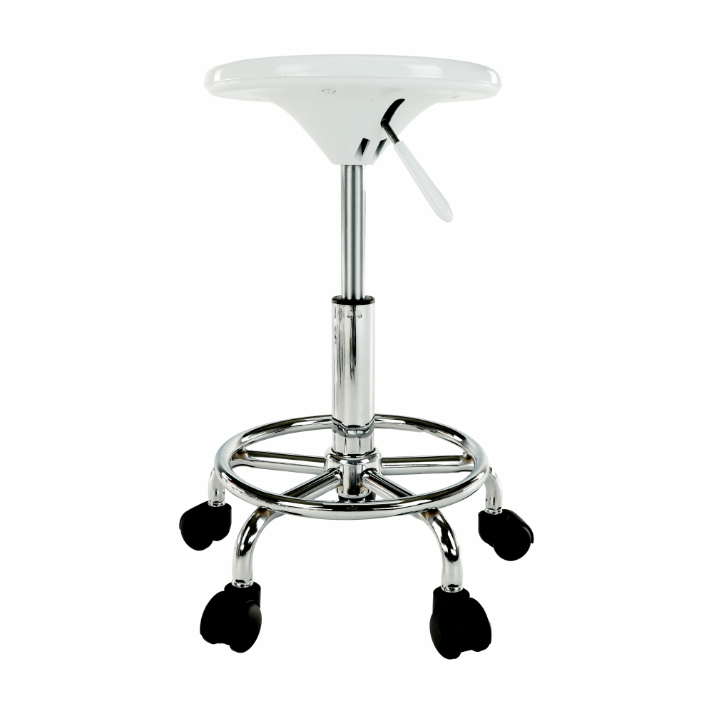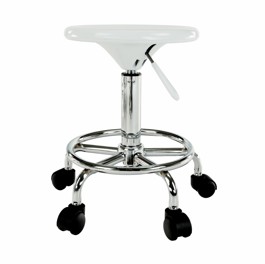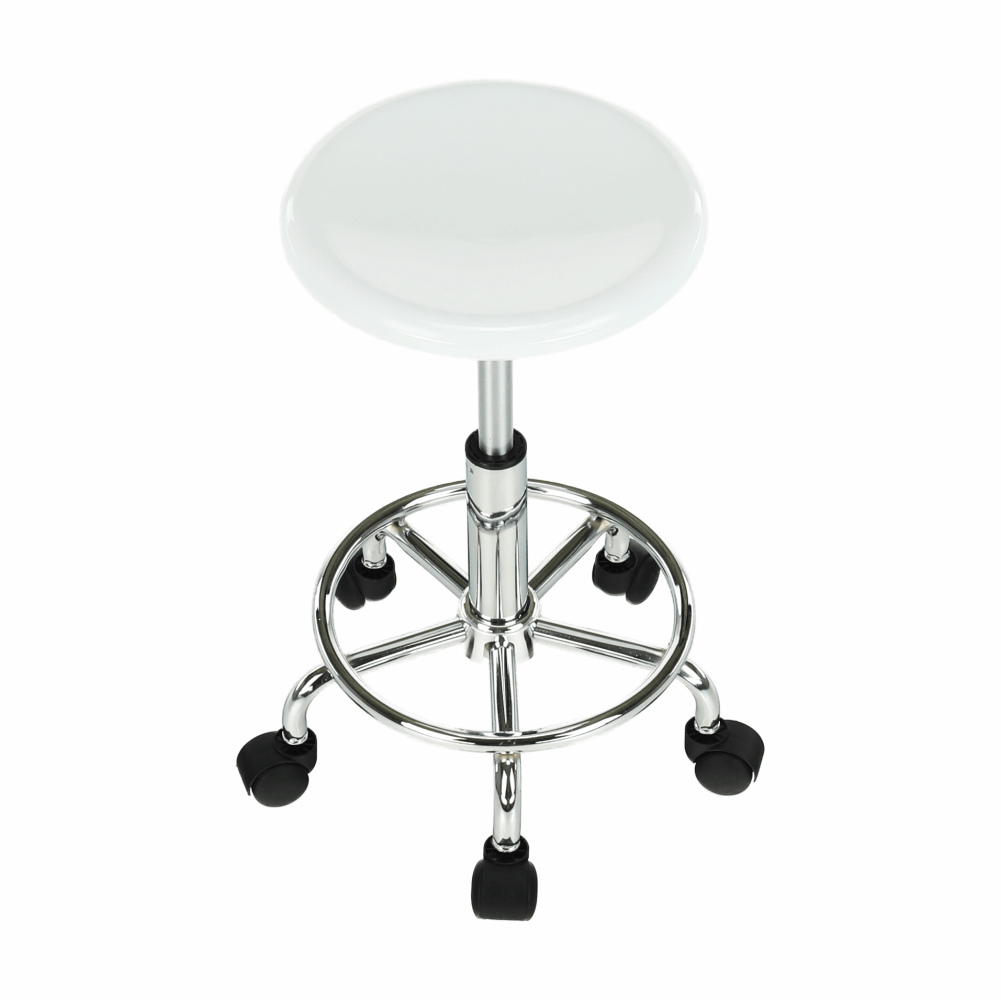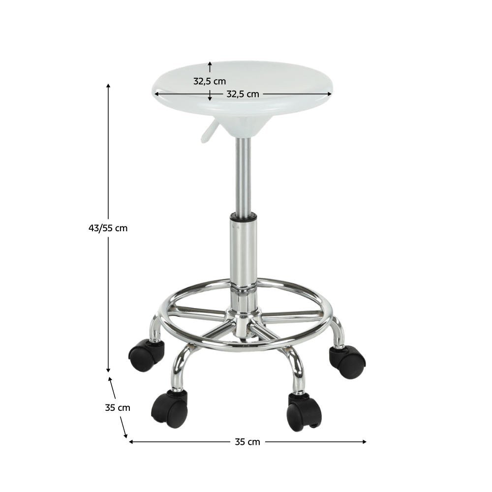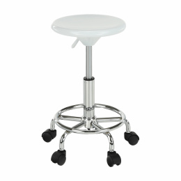 Židle - taburet na kolečkách s nastavitelnou výškou MABEL 4 NEW Materiál: ABS plast/chrom Barva: bílá/chrom Rozměry (ŠxHxV): 35x35x43-55 cm Výška sedu: 43-55 cm Hloubka sedu: 32,5 cm Šířka sedu: 32,5 cm Nosnost: 100 kg Výškově nastavitelná S kolečky Dodáváno v demontu