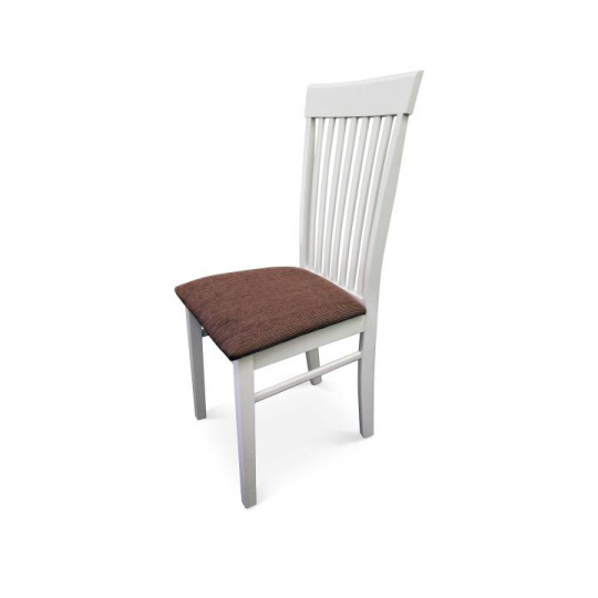 Židle ASTRO NEW Materiál: MDF dýhovaná / látka Oděruodolnost textilie podle testu Martindale: 90 000 oděrek Provedení: bílá / hnědá Rozměry (ŠxHxV): 44x49x95 cm Nosnost židle 100 kg Dodávané v monte