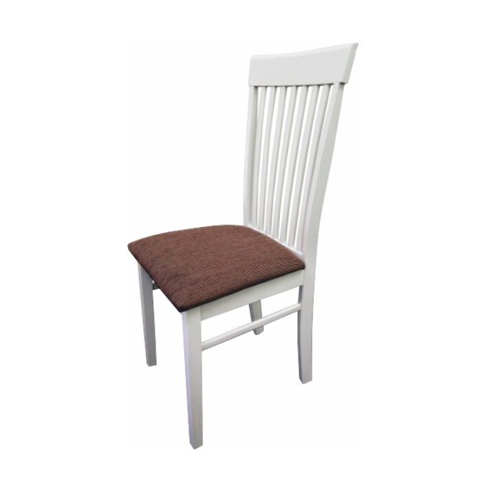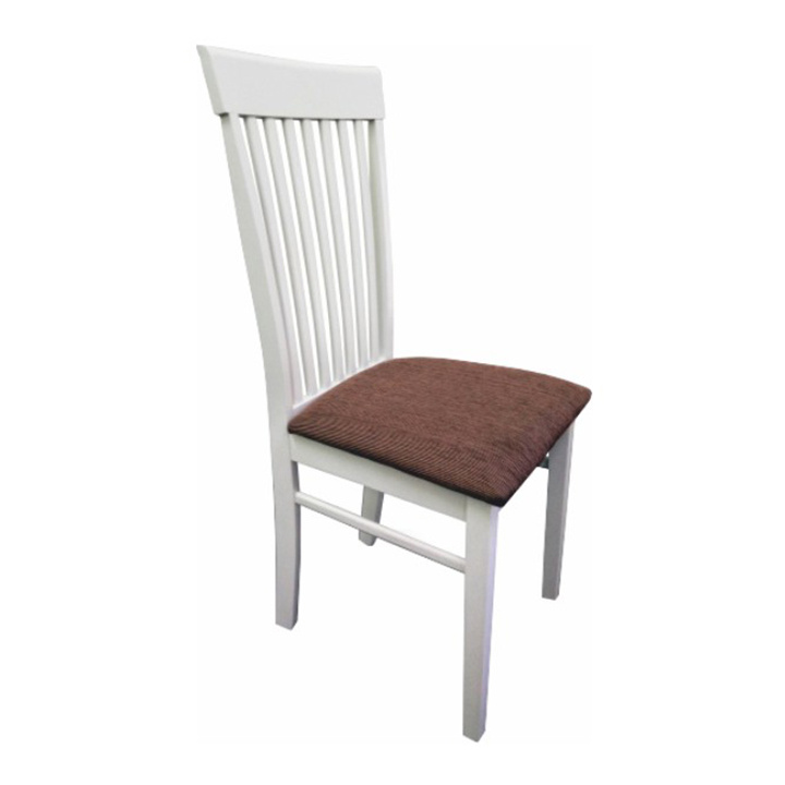 Židle ASTRO NEW Materiál: MDF dýhovaná / látka Oděruodolnost textilie podle testu Martindale: 90 000 oděrek Provedení: bílá / hnědá Rozměry (ŠxHxV): 44x49x95 cm Nosnost židle 100 kg Dodávané v monte