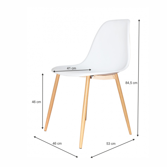 Jídelní židle Sint Materiál: plast / kov Provedení: bílá / přírodní Rozměry (ŠxHxV): 46x53x84,5 cm Výška sedu: 46 cm Hloubka sedu: 41 cm Nosnost: 120 kg