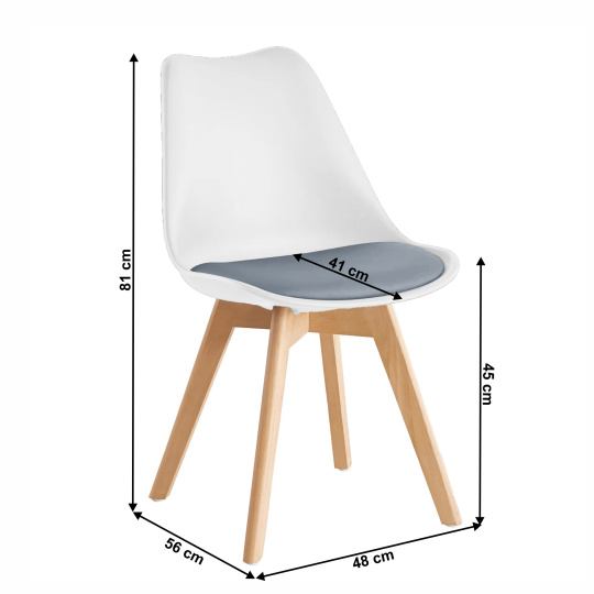 Materiál: dřevo/plast/ekokůže Oděruodolnost textilie podle testu Martindale: 100 000 oděrů Barva: buk/bílá/šedá Rozměry (ŠxHxV): 48x54x80 cm Výška sedu: 46 cm Hloubka sedu: 42 cm Extra měkké sezení Nosnost: 110 kg Dodáváno v demontu