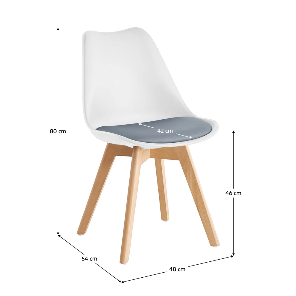Materiál: dřevo/plast/ekokůže Oděruodolnost textilie podle testu Martindale: 100 000 oděrů Barva: buk/bílá/šedá Rozměry (ŠxHxV): 48x54x80 cm Výška sedu: 46 cm Hloubka sedu: 42 cm Extra měkké sezení Nosnost: 110 kg Dodáváno v demontu