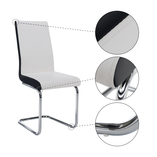 Jídelní židle, materiál: ekokůže + chrom, Oděruodolnost textilie podle testu Martindale: 100 000 oděrek barevné provedení: bílá + černá, rozměry (ŠxHxV): 42x42x98 cm, výška sezení je 47 cm. Nosnost: 110 kg Zboží je dodáváno v demontu.