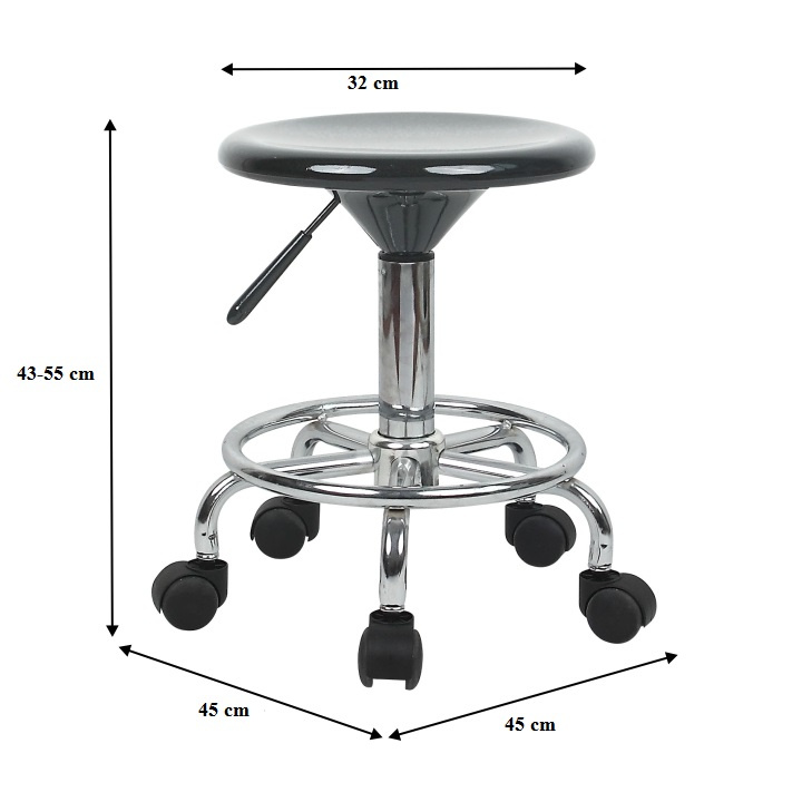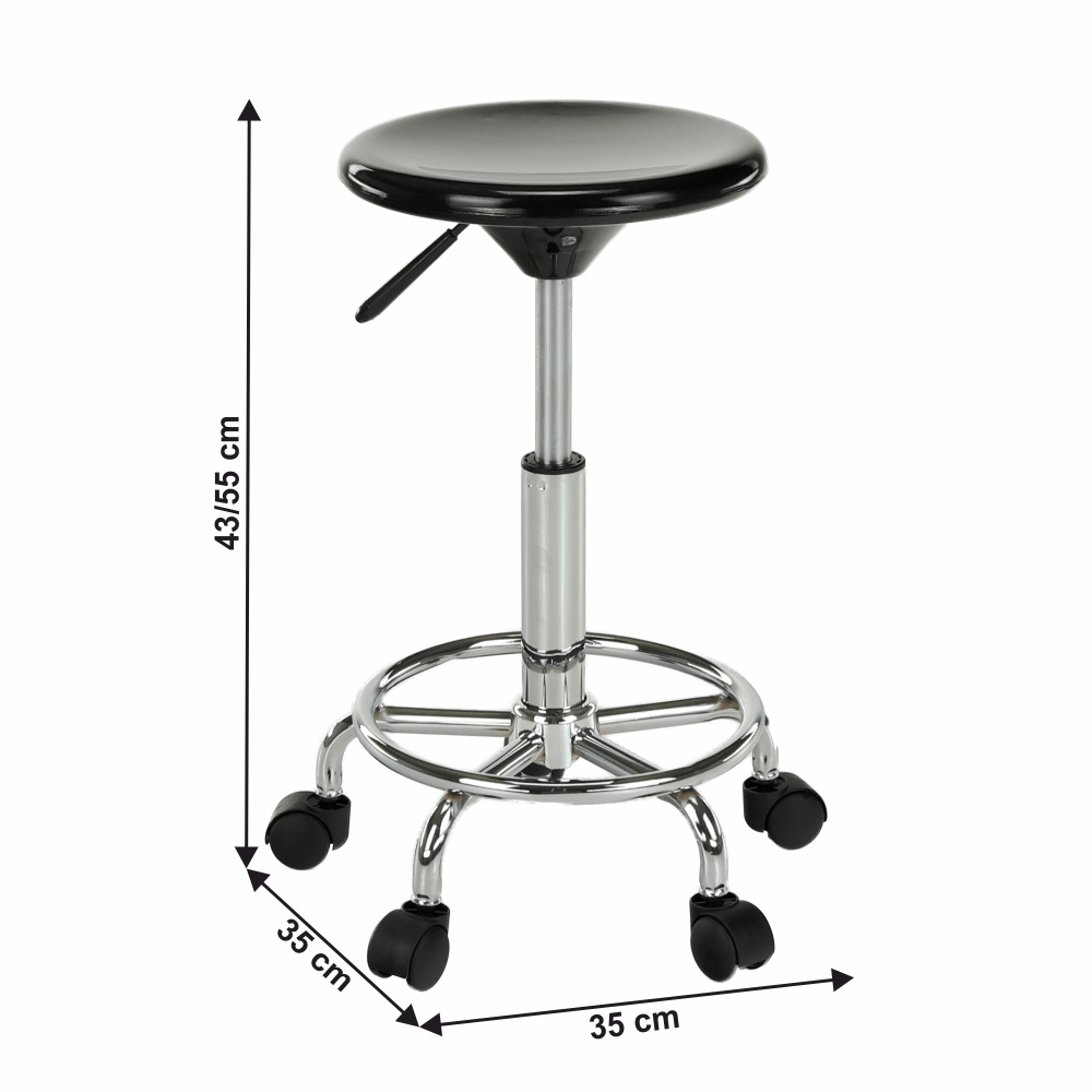 Židle - taburet na kolečkách s nastavitelnou výškou MABEL 3 NEW Materiál: chrom / plast Barva: černá Rozměry (ŠxHxV): 35x35x43 / 55 cm Výška sedu: 43/55 cm Nosnost 90 kg Dodávané v demontu