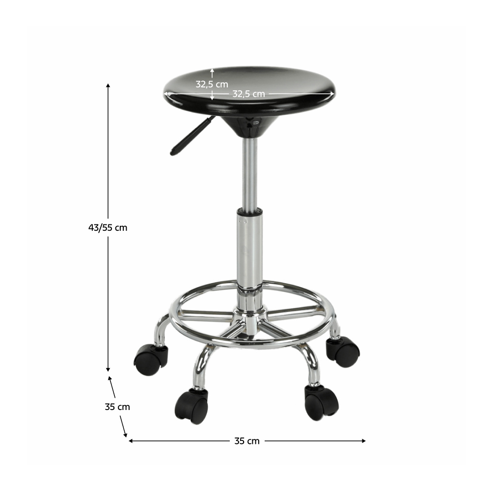 Židle - taburet na kolečkách s nastavitelnou výškou MABEL 4 NEW Materiál: ABS plast/chrom Barva: černá/chrom Rozměry (ŠxHxV): 35x35x43-55 cm Výška sedu: 43-55 cm Hloubka sedu: 32,5 cm Šířka sedu: 32,5 cm Nosnost: 100 kg Výškově nastavitelná S kolečky Dodáváno v demontu
