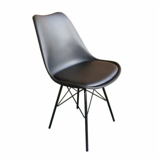 Designová židle s extra měkkým sedadlem TAMORA. Materiál: kov / plast / ekokůže Oděruodolnost textilie podle testu Martindale: 100 000 oděrek Barva: černá Rozměry (ŠxHxV): 48x57x83 cm Výška sezení: 49 cm Hloubka sedu: 43 cm Nosnost: 110 kg Dodávané v demontu.
