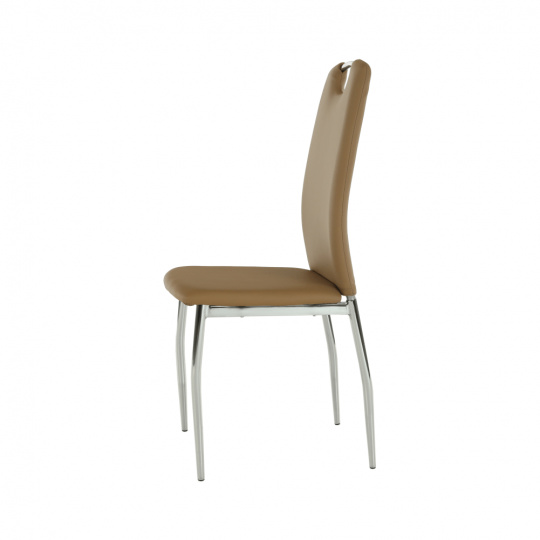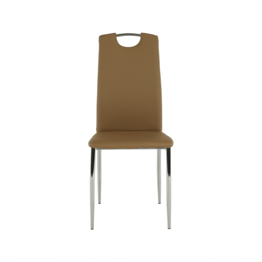 Jídelní židle ERVINA Materiál: ekokůže / chrom Oděruodolnost textilie podle testu Martindale: 100 000 oděrek Barva: béžová Rozměry (ŠxHxV): 42x43x99 cm Výška sedu: 47 cm Hloubka sedu: 40 cm Nosnost: 110 kg Dodávané v demontu.