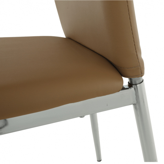 Materiál: ekokůže / chrom Oděruodolnost textilie podle testu Martindale: 100 000 oděrek Barva: světlehnědá / chrom Rozměry (ŠxHxV): 44x60,5x98 cm Výška sedu: 46 cm Hloubka sedu: 42,5 cm Nosnost: 90 kg Dodávané v demontu. Hmotnost: 6.85kg
