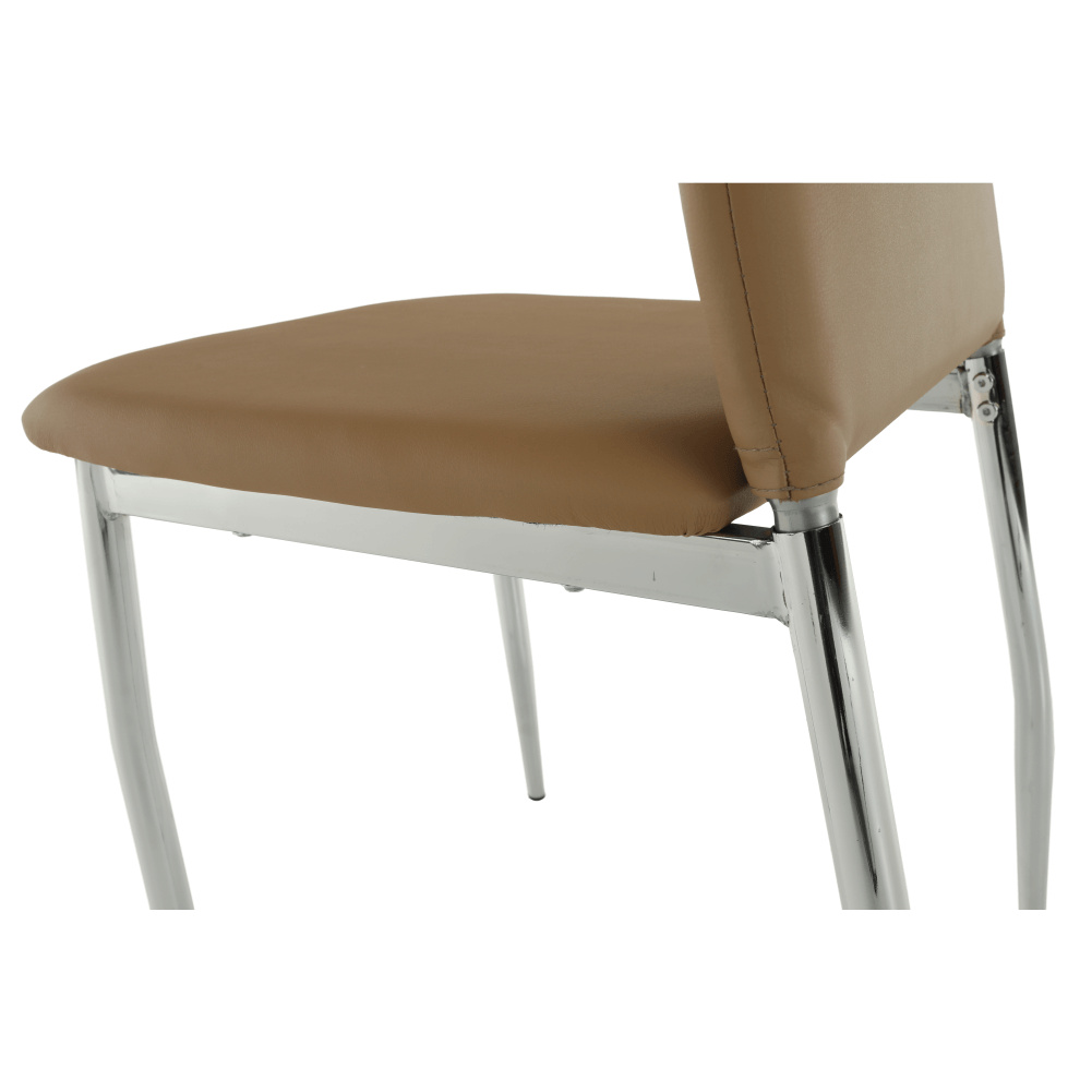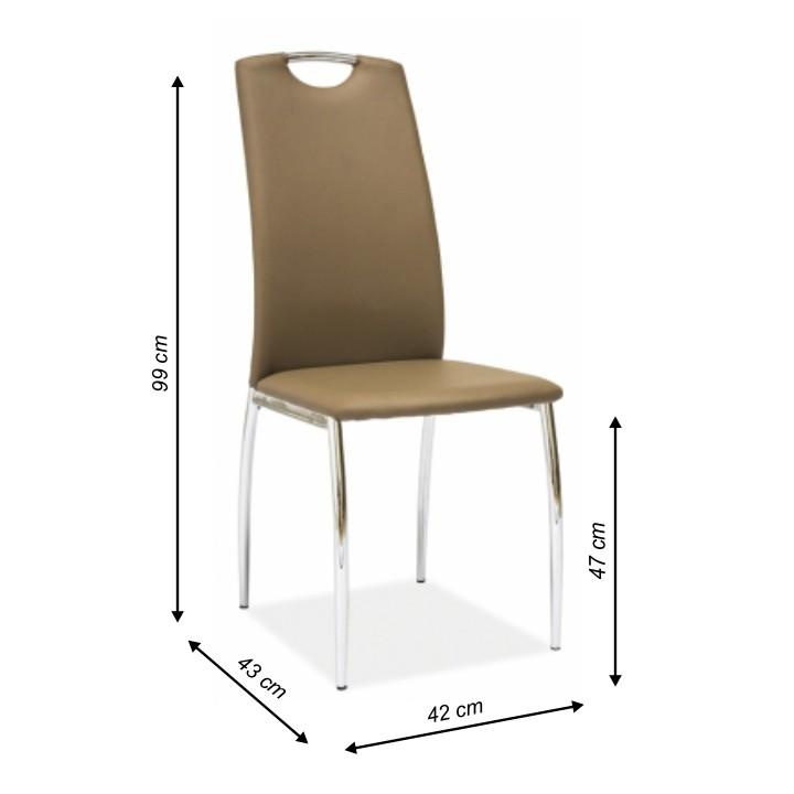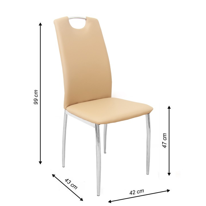 Jídelní židle ERVINA Materiál: ekokůže / chrom Oděruodolnost textilie podle testu Martindale: 100 000 oděrek Barva: béžová Rozměry (ŠxHxV): 42x43x99 cm Výška sedu: 47 cm Hloubka sedu: 40 cm Nosnost: 110 kg Dodávané v demontu.