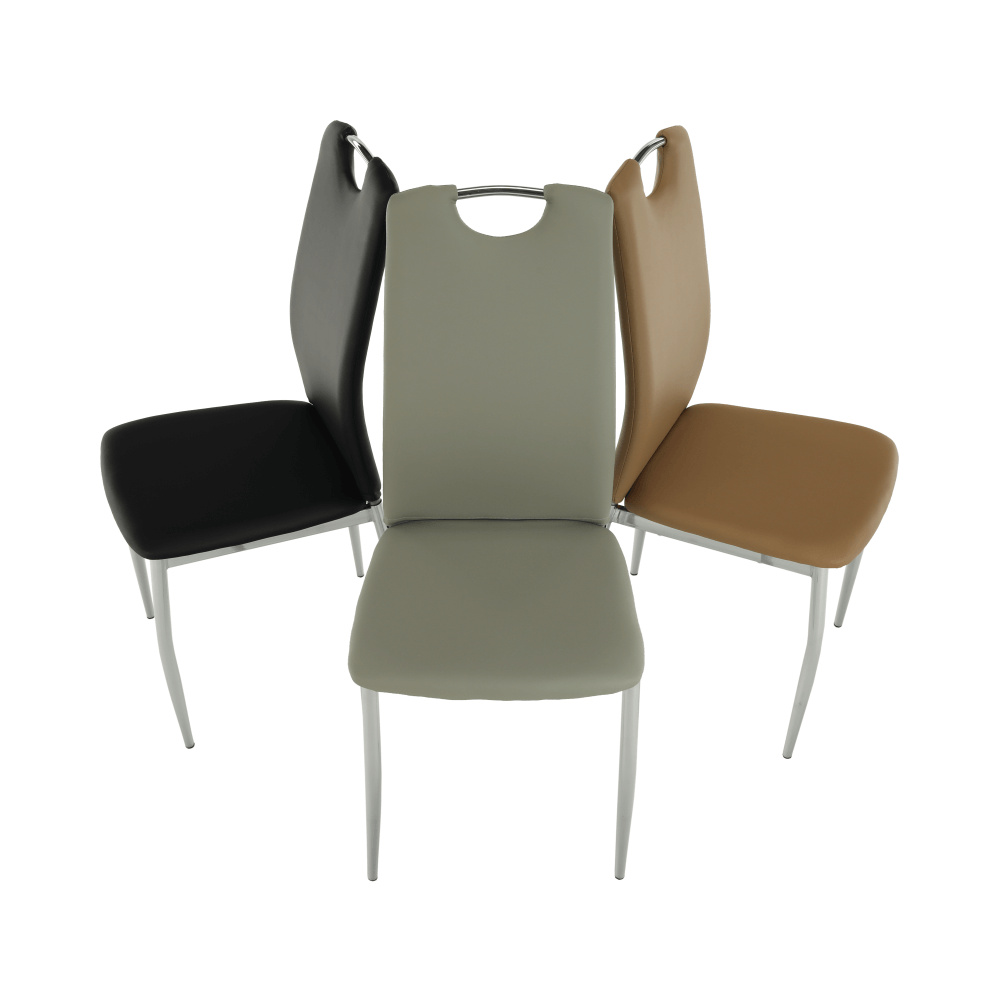 Jídelní židle ERVINA Materiál: ekokůže / chrom Oděruodolnost textilie podle testu Martindale: 100 000 oděrek Barva: šedá Rozměry (ŠxHxV): 42x43x99 cm Výška sedu: 47 cm Hloubka sedu: 40 cm Nosnost: 110 kg Dodávané v demontu. Hmotnost: 4.75kg