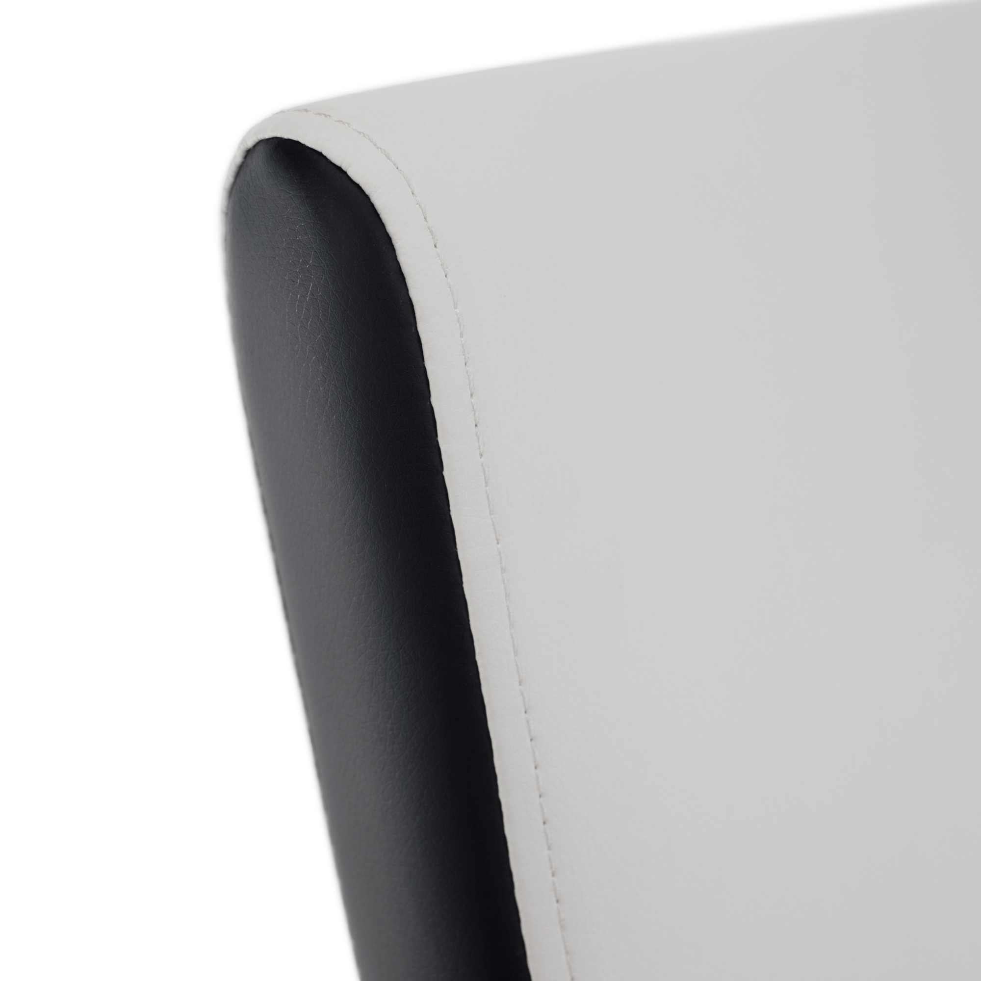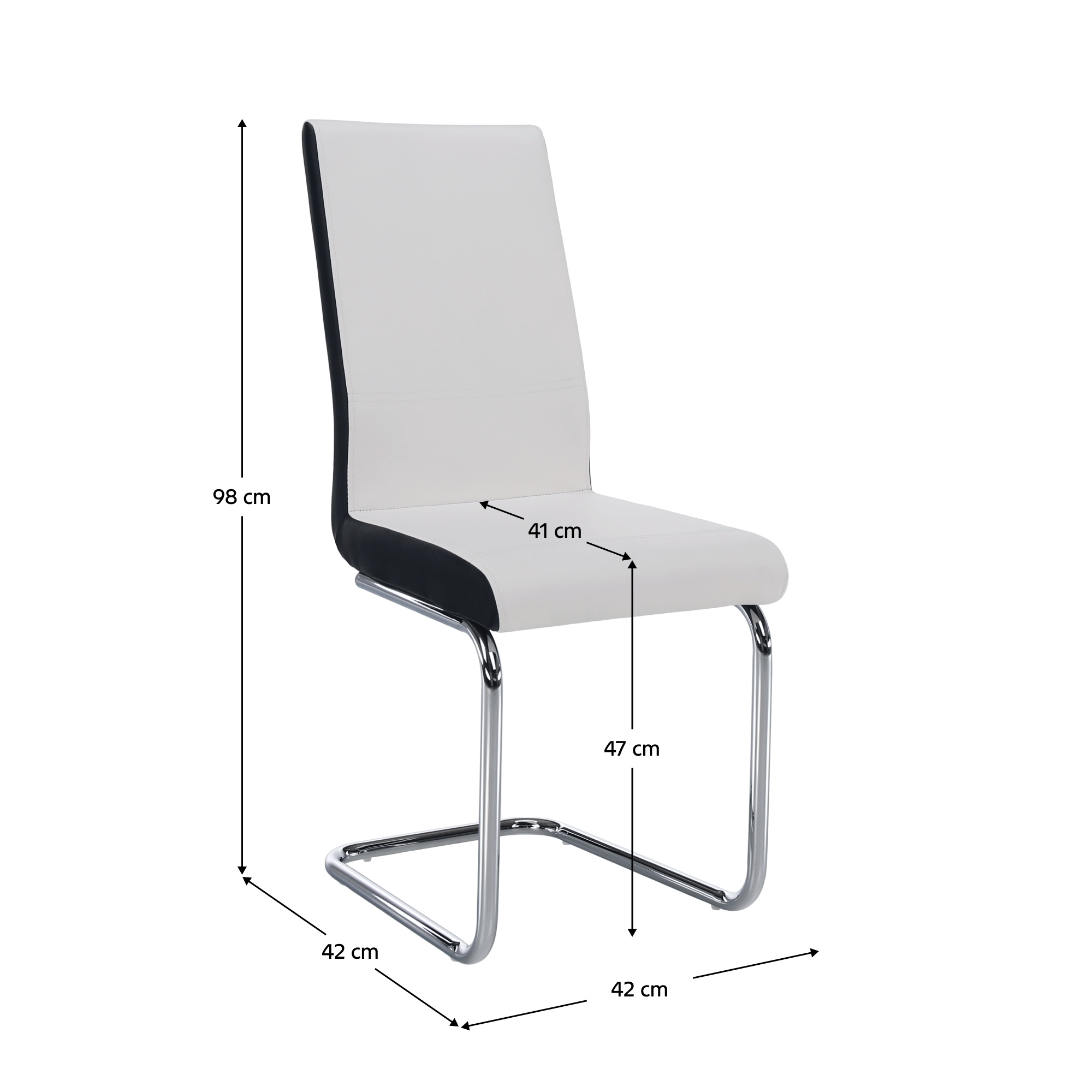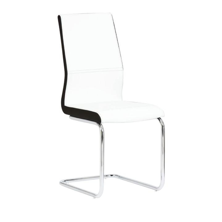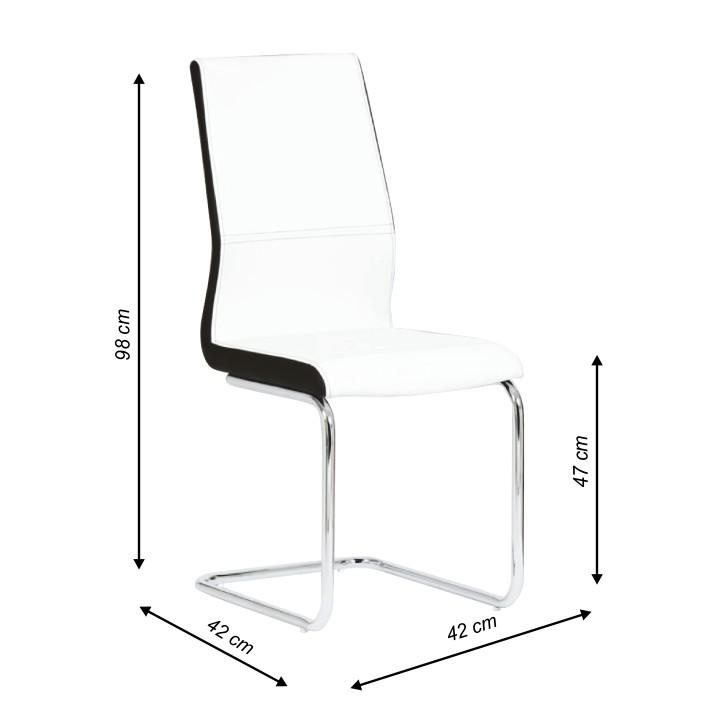 Jídelní židle, materiál: ekokůže + chrom, Oděruodolnost textilie podle testu Martindale: 100 000 oděrek barevné provedení: bílá + černá, rozměry (ŠxHxV): 42x42x98 cm, výška sezení je 47 cm. Nosnost: 110 kg Zboží je dodáváno v demontu.