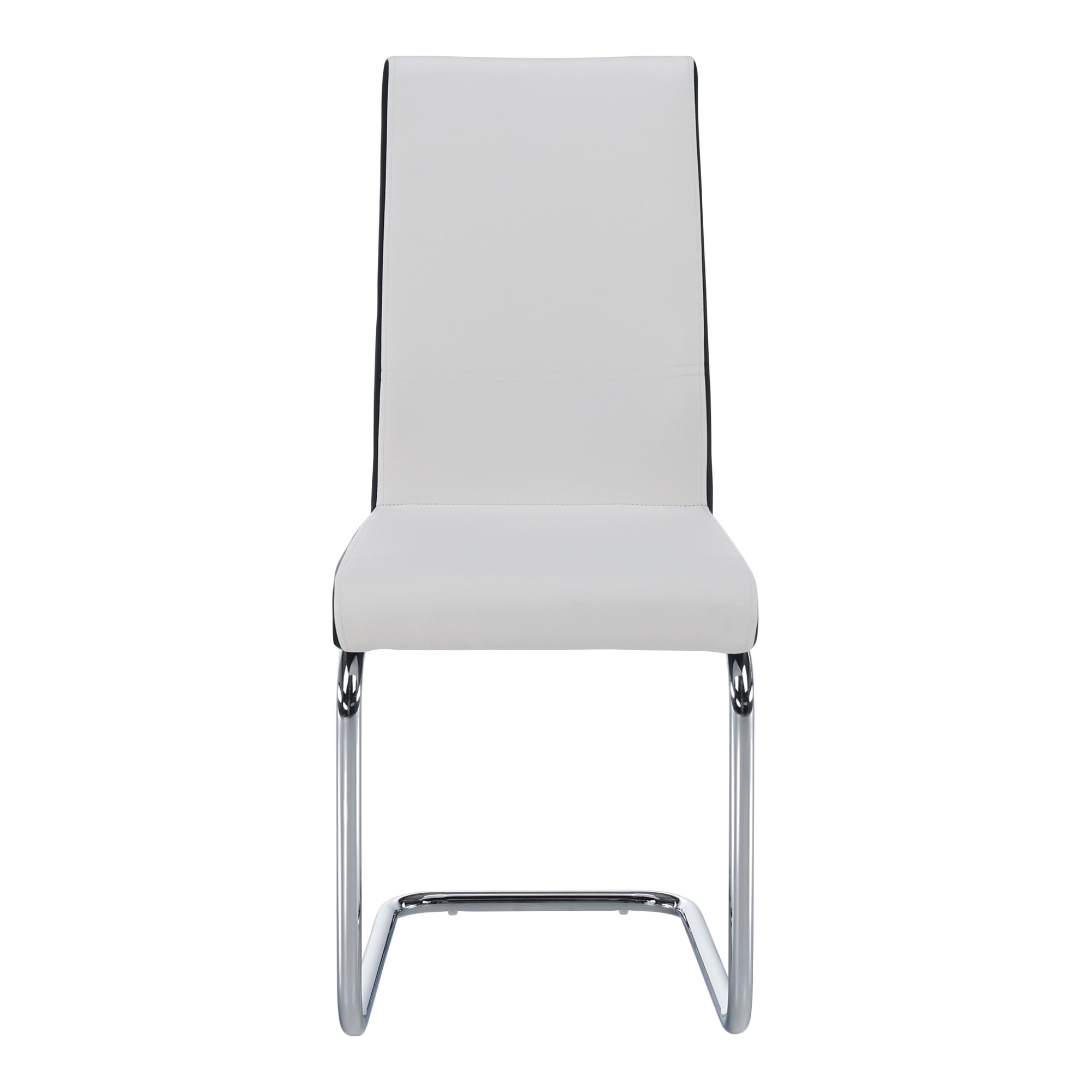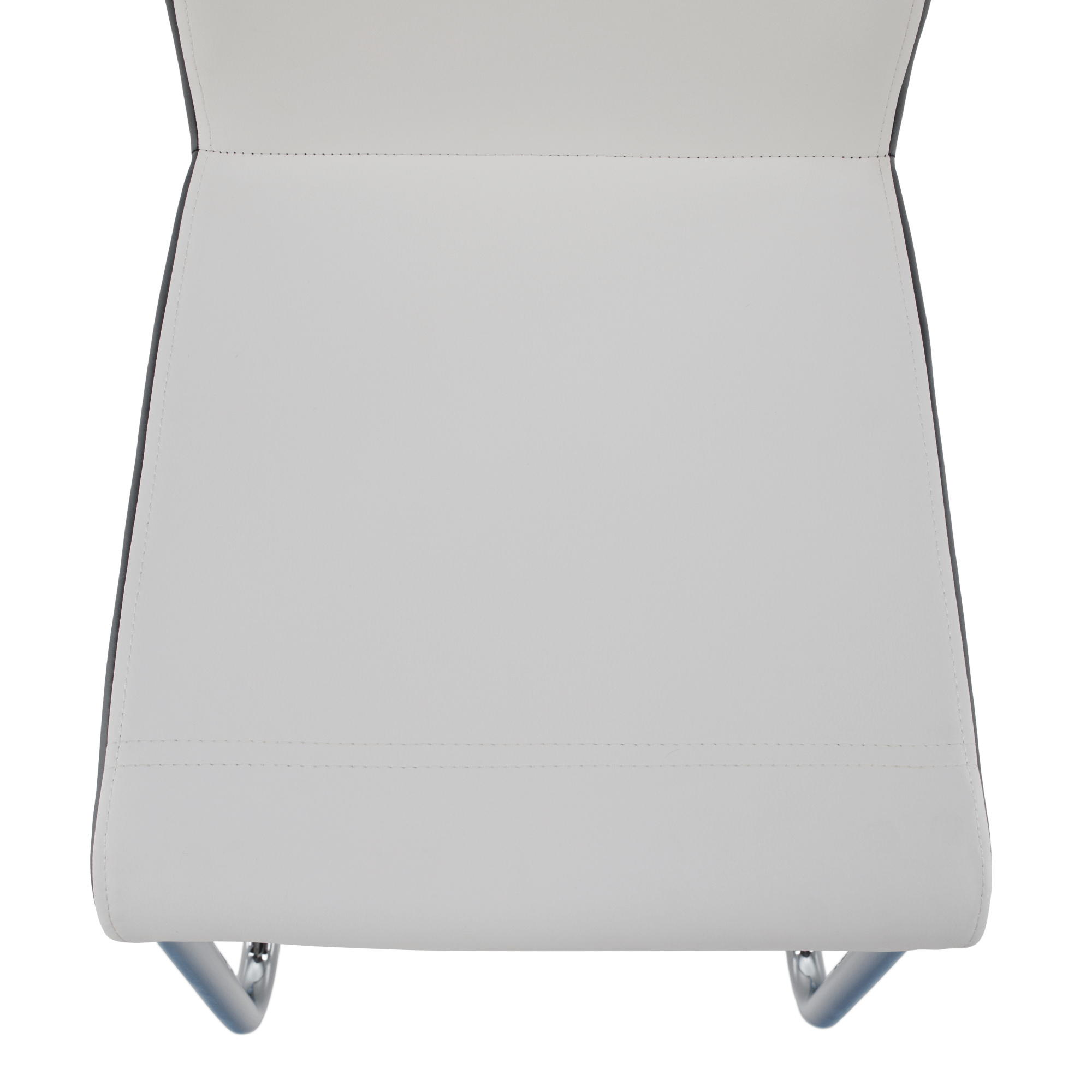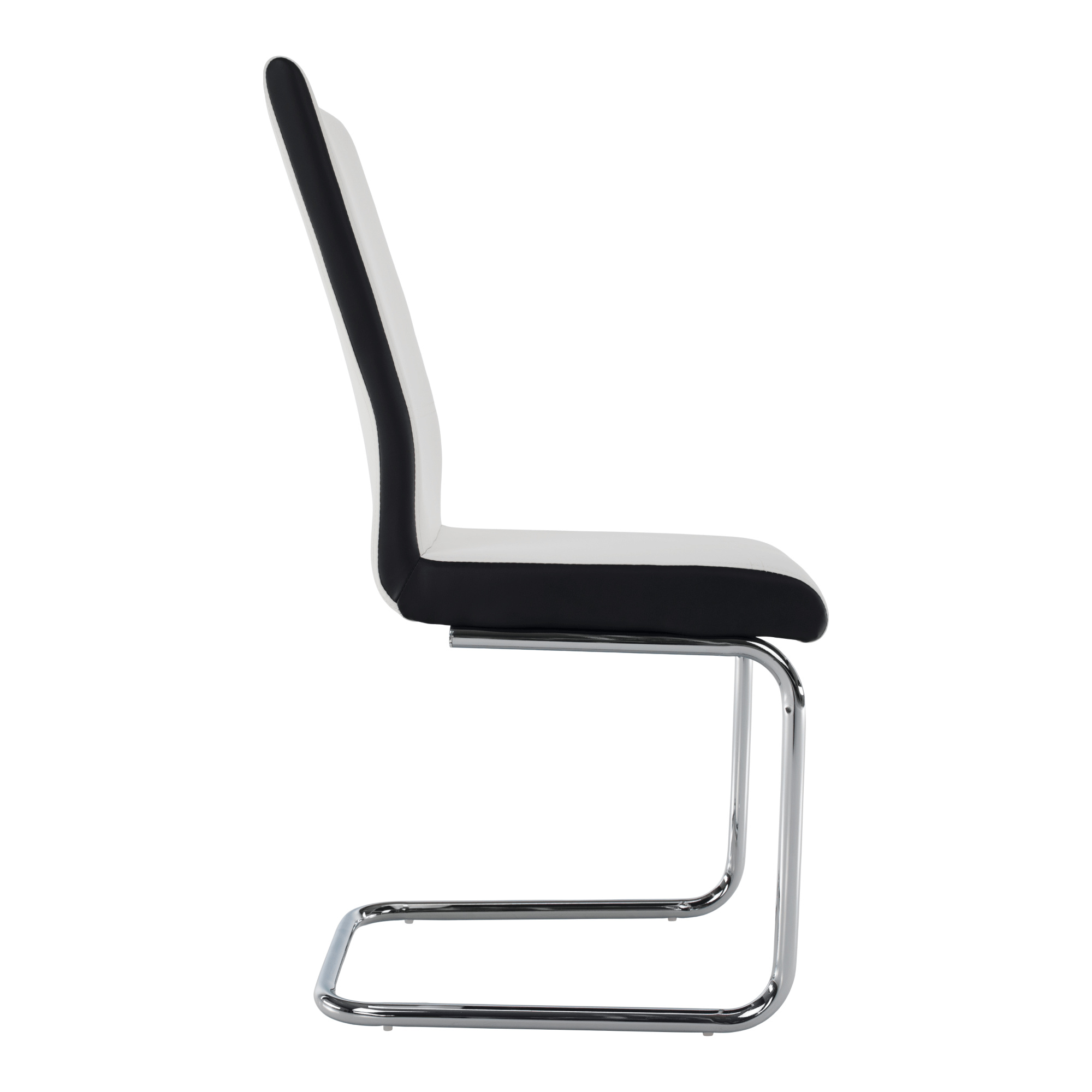 Jídelní židle, materiál: ekokůže + chrom, Oděruodolnost textilie podle testu Martindale: 100 000 oděrek barevné provedení: bílá + černá, rozměry (ŠxHxV): 42x42x98 cm, výška sezení je 47 cm. Nosnost: 110 kg Zboží je dodáváno v demontu.