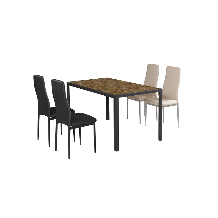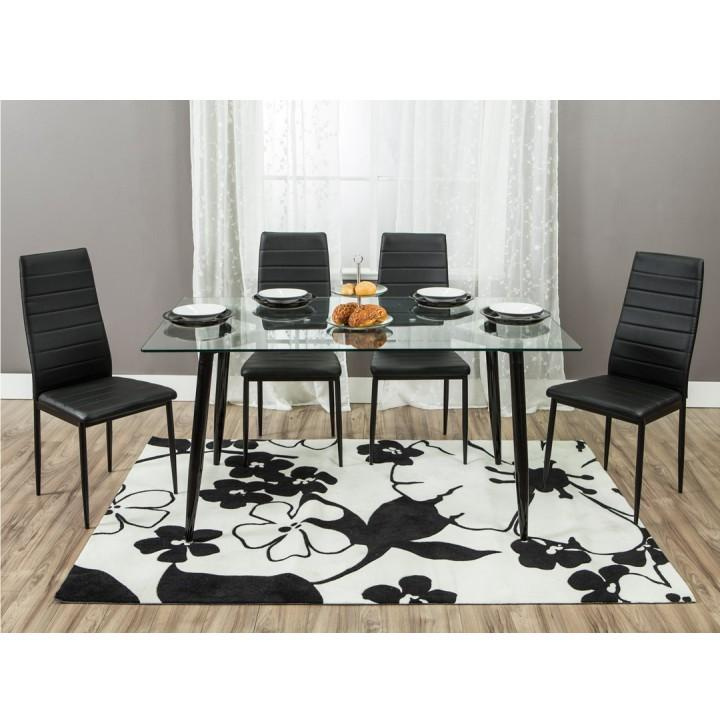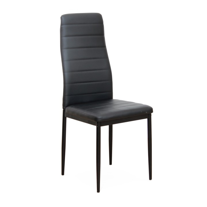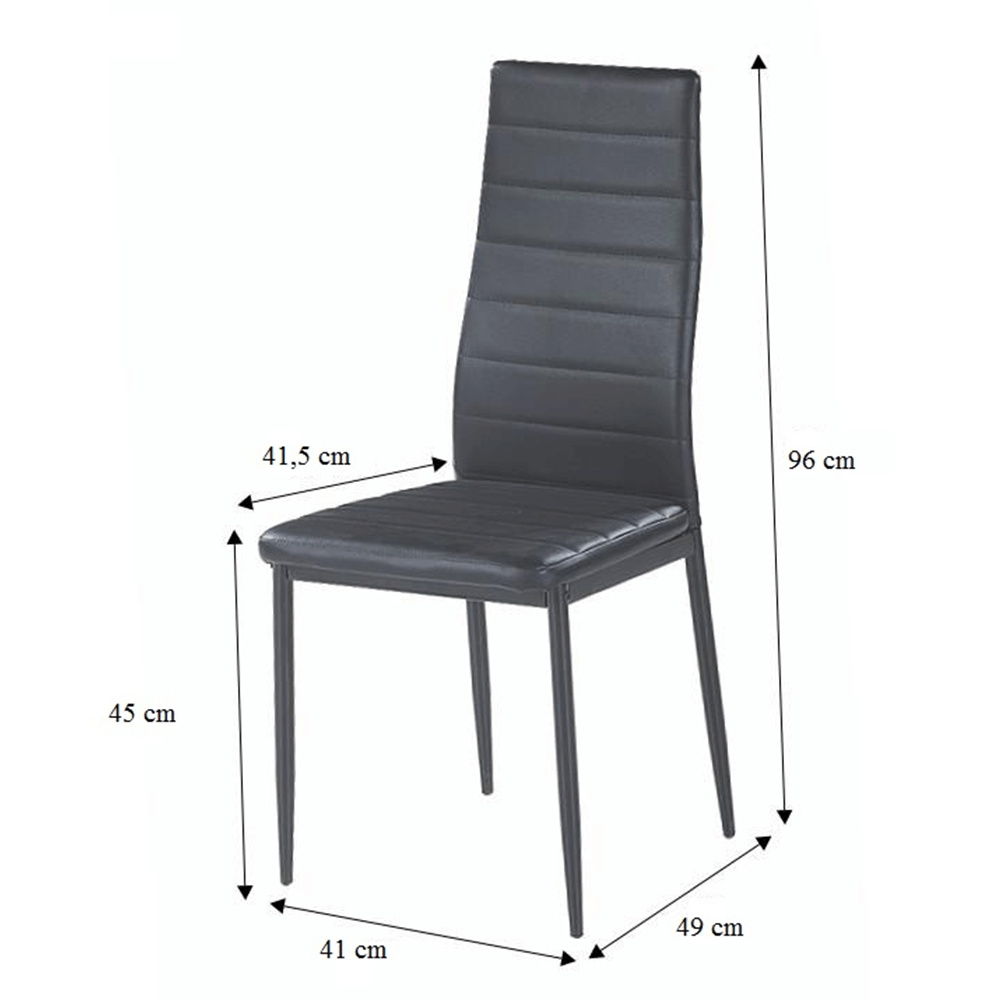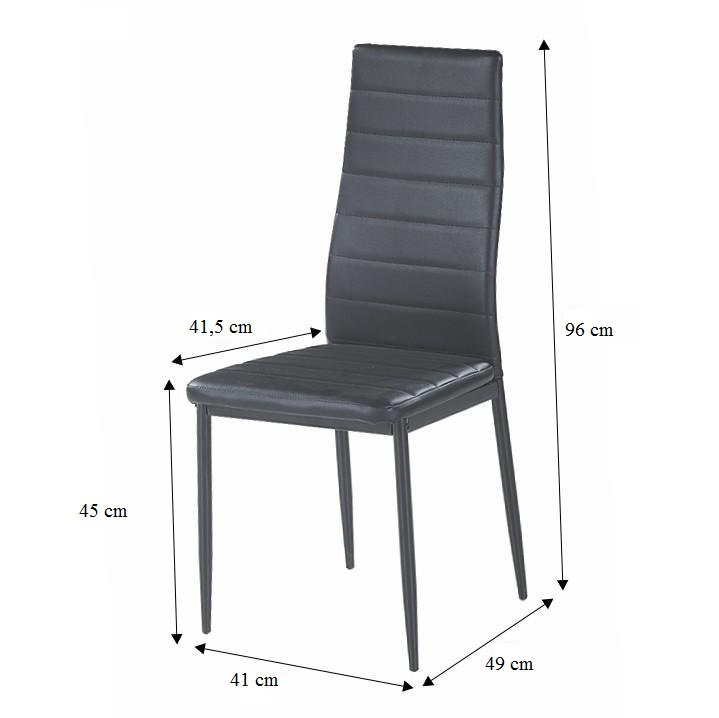 Jídelní židle se šitím, materiál: ekokůže / kov s povrchovou úpravou černá. Oděruodolnost textilie podle testu Martindale: 100 000 oděrek barevné provedení: černá Rozměry ŠxHxV: 41x49x96 cm, výška sezení je 45cm. Hloubka sedu: 39 cm Nosnost: 90 kg Židle je dodávána v demontu