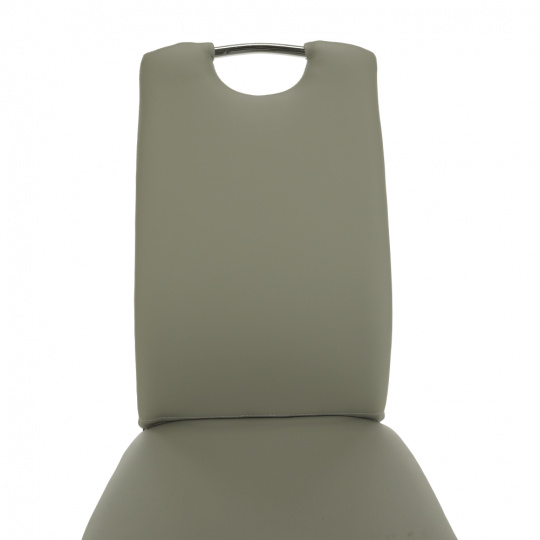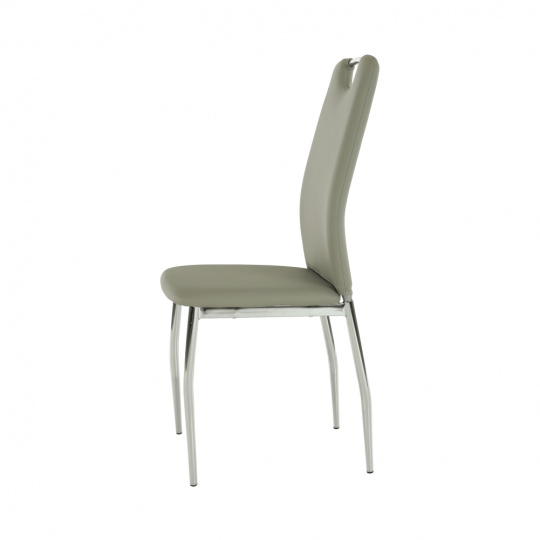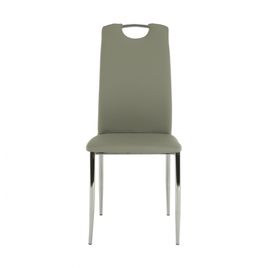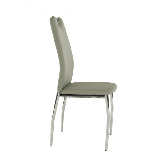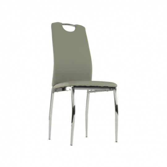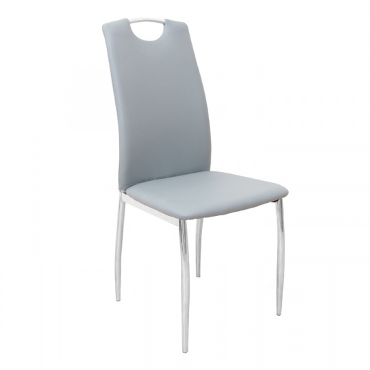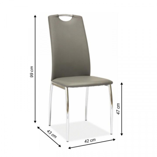 Jídelní židle ERVINA Materiál: ekokůže / chrom Oděruodolnost textilie podle testu Martindale: 100 000 oděrek Barva: šedá Rozměry (ŠxHxV): 42x43x99 cm Výška sedu: 47 cm Hloubka sedu: 40 cm Nosnost: 110 kg Dodávané v demontu.
