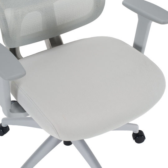 Materiál: síťovina/látka/plast Oděruodolnost síťoviny podle testu Martindale: 90 000 oděrů Oděruodolnost látky podle testu Martindale: 80 000 oděrů Barva: světle šedá/šedá Rozměry (ŠxHxV): 70x68x116-121/126-131 cm Výška sedu: 47-57 cm Hloubka sedu: 54 cm Šířka sedu: 52 cm Šířka zádové opěrky: 53 cm Výška zádové opěrky: 61-66 cm Nosnost: 150 kg Otočná židle Funkce houpání Nastavitelná výška sedu Dynamická bederní opěrka Nastavitelná výška zádové opěrky 3 pozice nastavení výšky zádové opěrky Nastavitelný úhel opěrky hlavy Výškově nastavitelné opěrky na ruce Pohodlné a měkké sedátko Univerzální kolečka Kolečka jsou vhodná pro měkké i tvrdé podlahy Praktická Ergonomické vlastnosti Dodáváno v demontu