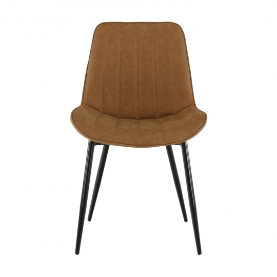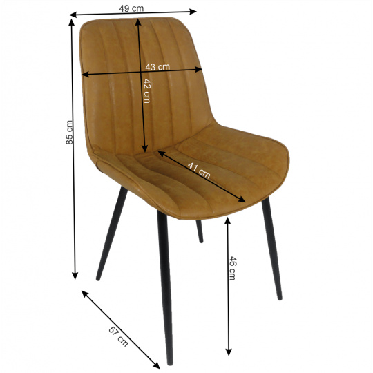 Materiál čalounění: ekokůže Oděruodolnost textilie podle testu Martindale: 68 000 oděrek Barva: hnědá camel Materiál nohy: kov Barva: černá Rozměry (ŠxHxV): 49x57x85 cm Výška sedu: 46 cm Hloubka sedu: 41 cm Šířka sedu: 49 cm Šířka zádové opěrky: 43 cm Výška zádové opěrky: 42 cm Nosnost: 110 kg Dodávané v demontu