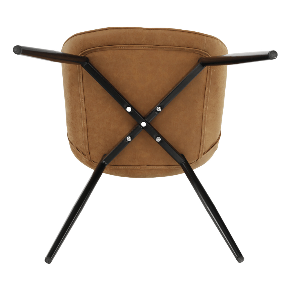 Materiál čalounění: ekokůže Oděruodolnost textilie podle testu Martindale: 68 000 oděrek Barva: hnědá camel Materiál nohy: kov Barva: černá Rozměry (ŠxHxV): 49x57x85 cm Výška sedu: 46 cm Hloubka sedu: 41 cm Šířka sedu: 49 cm Šířka zádové opěrky: 43 cm Výška zádové opěrky: 42 cm Nosnost: 110 kg Dodávané v demontu
