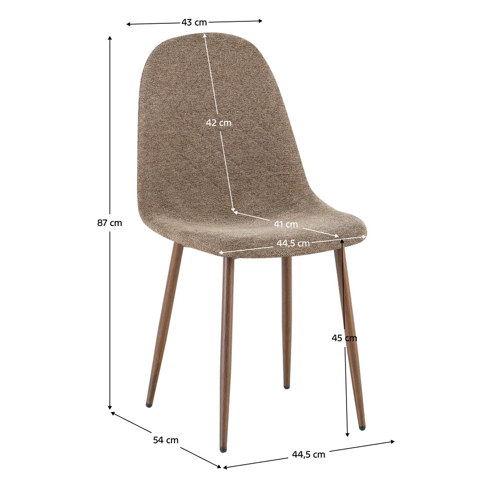 Materiál:látka/kov Oděruodolnost textilie podle testu Martindale: 68 000 oděrů Barva: hnědá/dub tmavý Rozměry (ŠxHxV): 44,5x54x87 cm Výška sedu: 45 cm Hloubka sedu: 41 cm Šířka sedu: 44,5 cm Výška zad: 42 cm Šířka zad: 43 cm Nosnost: 110 kg Dodáváno v demontu