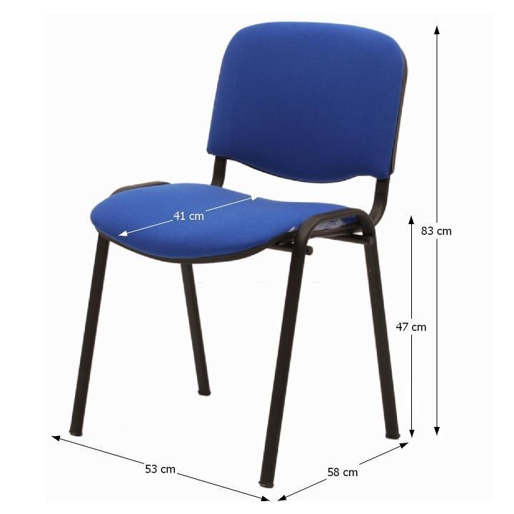 Kancelářská židle ISO NEW Materiál: látka/kov Oděruodolnost textilie podle testu Martindale: 80 000 oděrů Barva: modrá/černá Rozměry (ŠxHxV): 53x58x83 cm Výška sedu : 47 cm Hloubka sedu : 41 cm Nosnost: 110 kg Tloušťka materiálu: 1,2 mm Stohovací Dodávána v montě