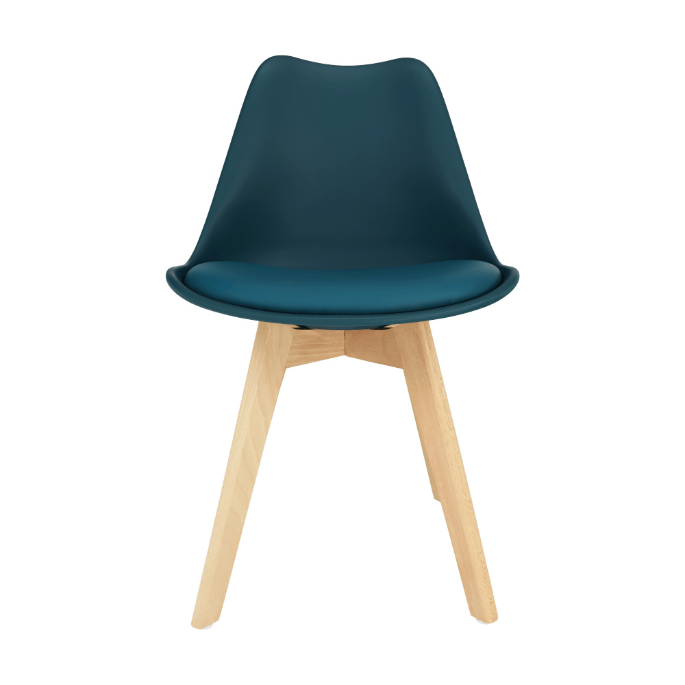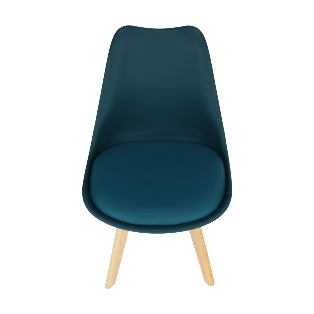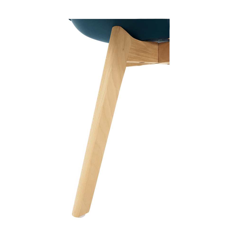 Materiál: dřevo / plast / ekokůže Oděruodolnost textilie podle testu Martindale: 100 000 oděrek Barva: buk / petrolejová Rozměry (ŠxHxV): 48x54x80 cm Výška sedu: 46 cm Hloubka sedu: 42 cm Extra měkké sezení Nosnost: 110 kg Dodávané v demontu