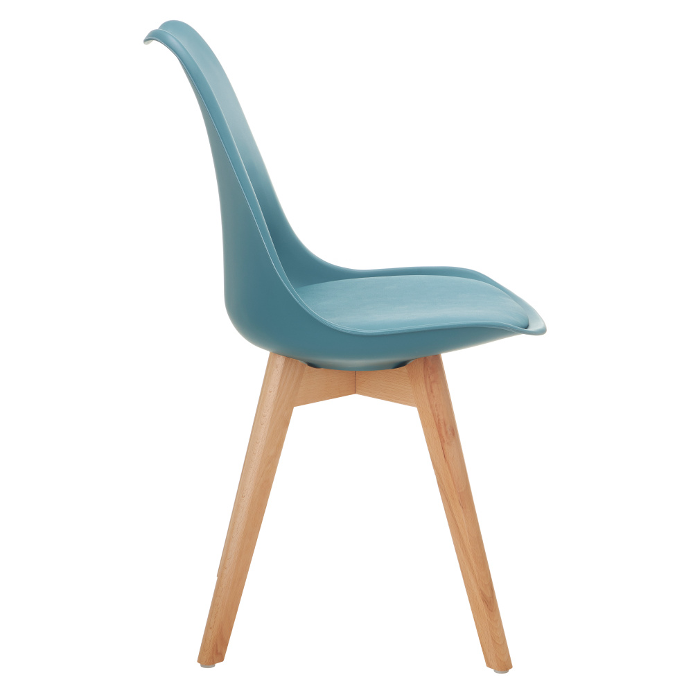 Materiál: dřevo / plast / ekokůže Oděruodolnost textilie podle testu Martindale: 100 000 oděrek Barva: buk / petrolejová Rozměry (ŠxHxV): 48x53x82 cm Výška sedu: 45 cm Hloubka sedu: 42 cm Extra měkké sezení Nosnost: 100 kg Dodávané v demontu
