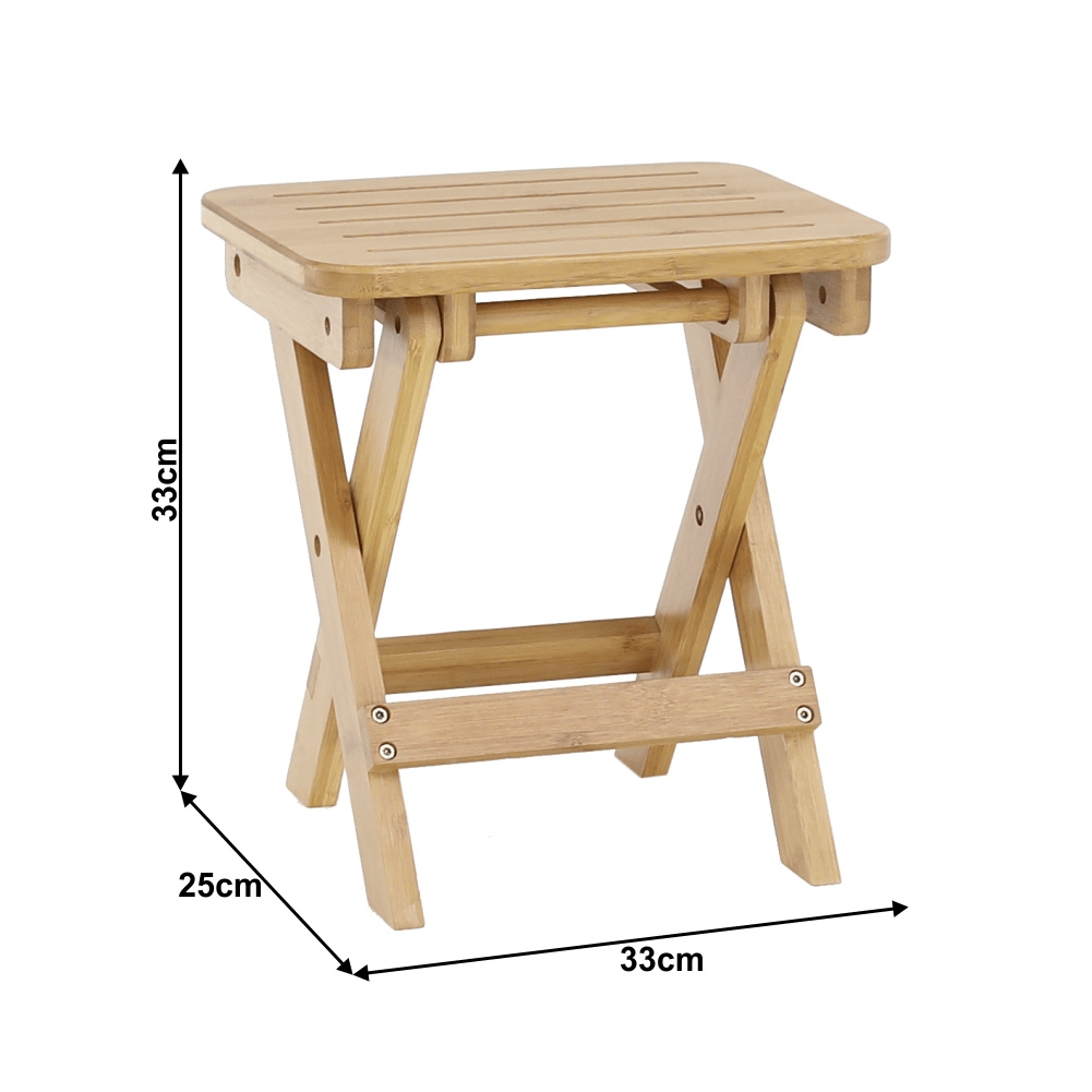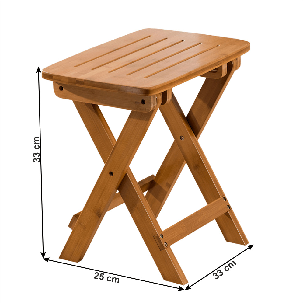 Materiál: bambus lakovaný Barva: přírodní Rozměry (ŠxHxV): 33x25x33 cm Nosnost: 100 kg Dá se složit Není vhodná do exteriéru Dodávané v monte