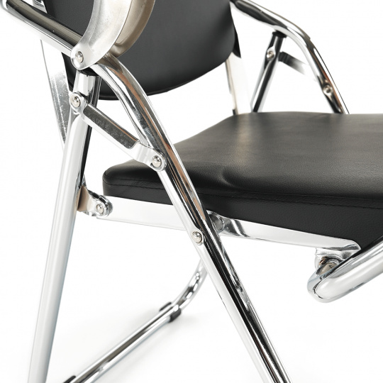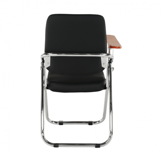 Zasedací židle s deskou na psaní SONER Materiál: ekokůže / dřevo / kov Oděruodolnost textilie podle testu Martindale: 100 000 oděrek Barva: černá / přírodní / chrom Rozměry (ŠxHxV): 51x85x84 cm Šířka sedu: 39 cm Výška sedu: 42 cm Hloubka sedu: 40 cm Zádová opěrka (ŠxV): 37x46,5 cm Rozměry desky (ŠxH): 38,5x27,5 cm Tloušťka desky: 1,5 cm Nosnost: 110 kg