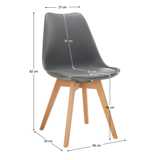 Materiál: dřevo / plast / ekokůže Oděruodolnost textilie podle testu Martindale: 100 000 oděrek Barva: buk / šedá Rozměry (ŠxHxV): 48x53x82 cm Výška sedu: 45 cm Hloubka sedu: 42 cm Extra měkké sezení Nosnost: 100 kg Dodávané v demontu