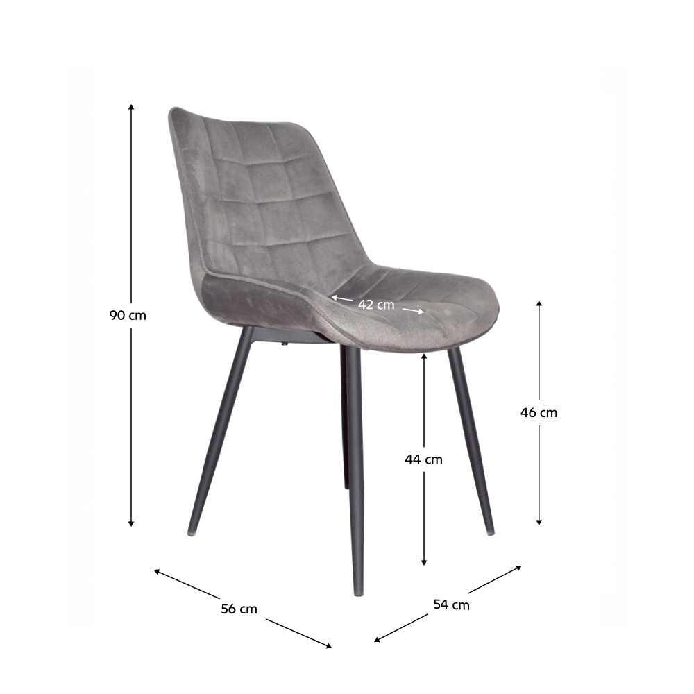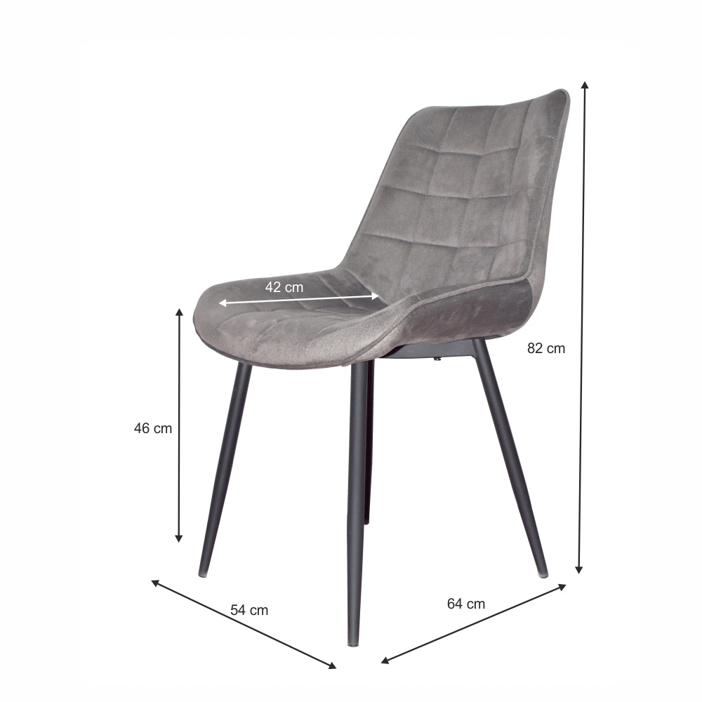 Materiál: látka Velvet / kov Oděruodolnost textilie podle testu Martindale: 80 000 oděrek Barva: šedá / černý nátěr Rozměry (ŠxHxV): 54x56x90cm Výška sedu: 46 cm Hloubka sedu: 42 cm Nosnost: 120 kg dekorativní šití sametová látka Dodávané v demontu