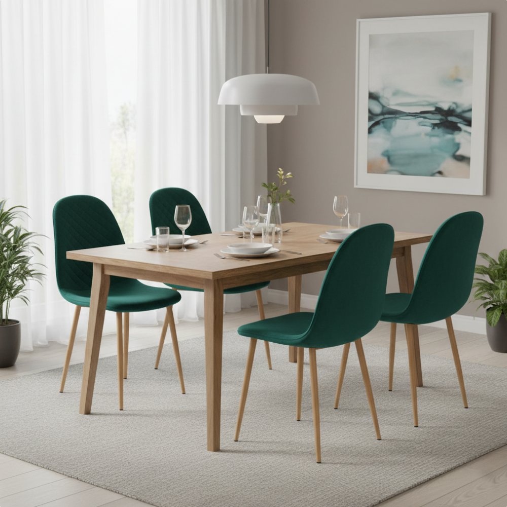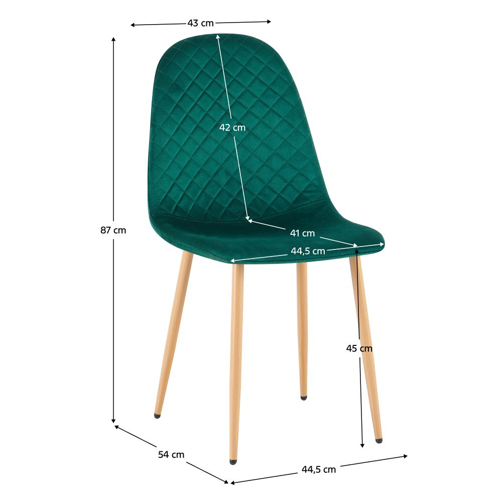 Materiál: látka/kov Oděruodolnost textilie Velvet podle testu Martindale: 85 000 oděrů Barva: smaragdová/buk Rozměry (ŠxHxV): 44,5x54x87 cm Výška sedu: 45 cm Hloubka sedu: 41 cm Šířka sedu: 44,5 cm Výška zad: 42 cm Šířka zad: 43 cm Nosnost: 110 kg Dodáváno v demontu