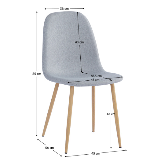 Materiál:látka/kov Oděruodolnost textilie podle testu Martindale: 68 000 oděrů Barva: světle šedá/buk Rozměry (ŠxHxV): 45x56x85 cm Výška sedu: 47 cm Hloubka sedu: 38,5 cm Šířka sedu: 45 cm Výška zad: 43 cm Šířka zad: 38 cm Nosnost: 110 kg Dodáváno v demontu