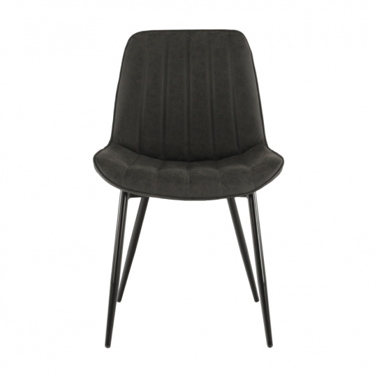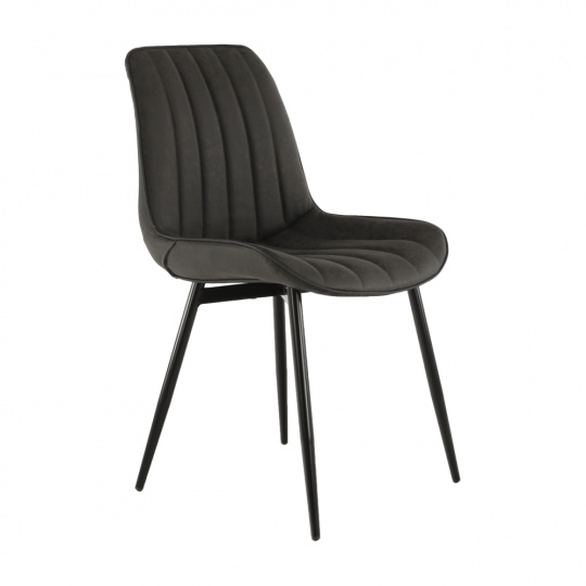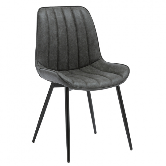 Materiál: ekokůže / kov Oděruodolnost textilie podle testu Martindale: 68 000 oděrek Barva: tmavě šedá / černá Rozměry (ŠxHxV): 49x57x85 cm Výška sedu: 46 cm Hloubka sedu: 41 cm Šířka sedu: 49 cm Šířka zádové opěrky: 43 cm Výška zádové opěrky: 42 cm Nosnost: 110 kg Dodávané v demontu