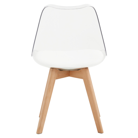 Materiál: akryl/ekokůže/bukové dřevo Oděruodolnost textilie podle testu Martindale: 100 000 oděrů Barva: transparentní/bíla/buk Rozměry (ŠxHxV): 48x54x80 cm Výška sedu: 46 cm Hloubka sedu: 42 cm Extra měkké sezení Akrylové provedení Nosnost: 110 kg Dodáváno v demontu