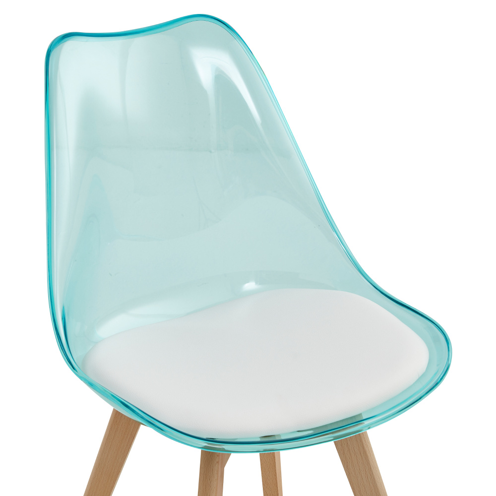 Materiál: akryl/ekokůže/bukové dřevo Oděruodolnost textilie podle testu Martindale: 100 000 oděrů Barva: transparentní zelená/bílá/buk Rozměry (ŠxHxV): 48x54x80 cm Výška sedu: 46 cm Hloubka sedu: 42 cm Extra měkké sezení Akrylové provedení Nosnost: 110 kg Dodáváno v demontu