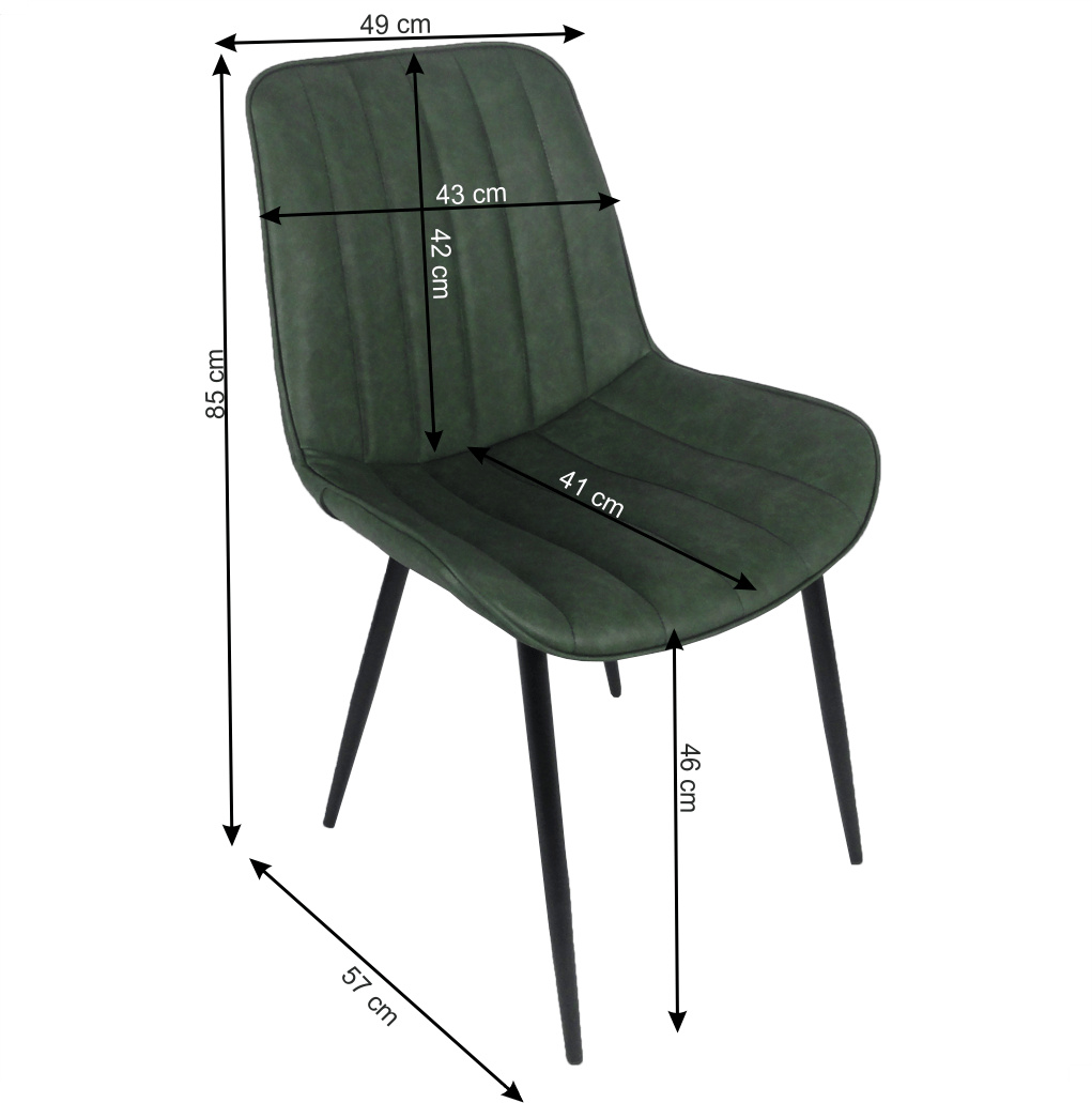 Materiál čalounění: ekokůže Oděruodolnost textilie podle testu Martindale: 68 000 oděrek Barva: zelená Materiál nohy: kov Barva: černá Rozměry (ŠxHxV): 49x57x85 cm Výška sedu: 46 cm Hloubka sedu: 41 cm Šířka sedu: 49 cm Šířka zádové opěrky: 43 cm Výška zádové opěrky: 42 cm Nosnost: 110 kg Dodávané v demontu
