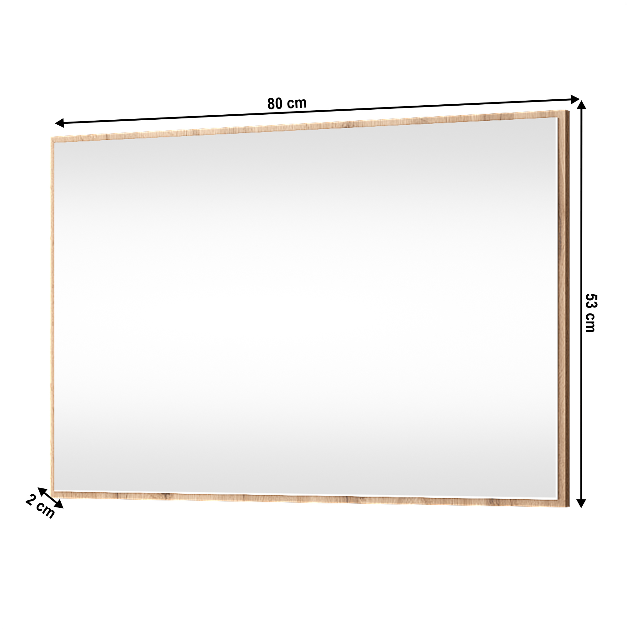 Zrcadlo MORATIZ 80 Materiál: DTD laminovaná/sklo Barva: dub wotan Rozměry (ŠxHxV): 80x2x53 cm Tloušťka materiálu: 1,6 - 2,2 cm Se sklem V rámu Dodávána v demontu