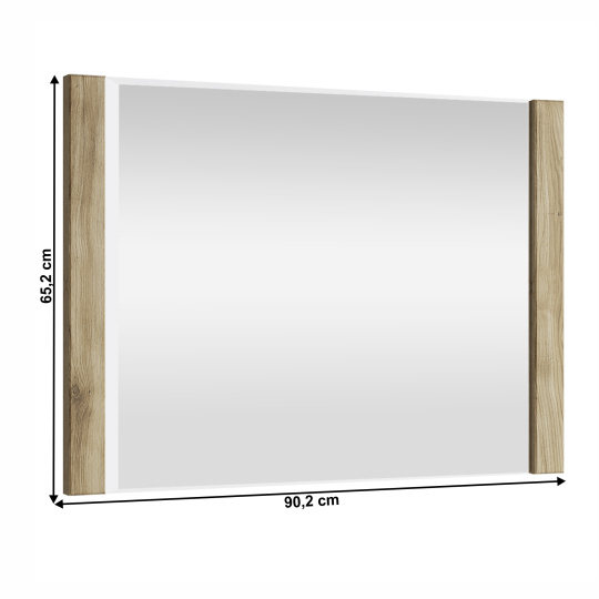 Zrcadlo DORSI 90 Materiál: DTD laminovaná/sklo Barva: dub navarra Rozměry (ŠxHxV): 90,2x3,2x65,2 cm Tloušťka materiálu: 1,6 cm Se sklem Dodáváno v monte
