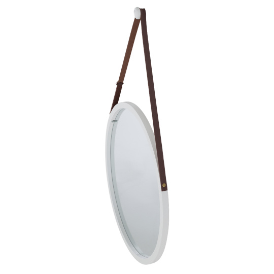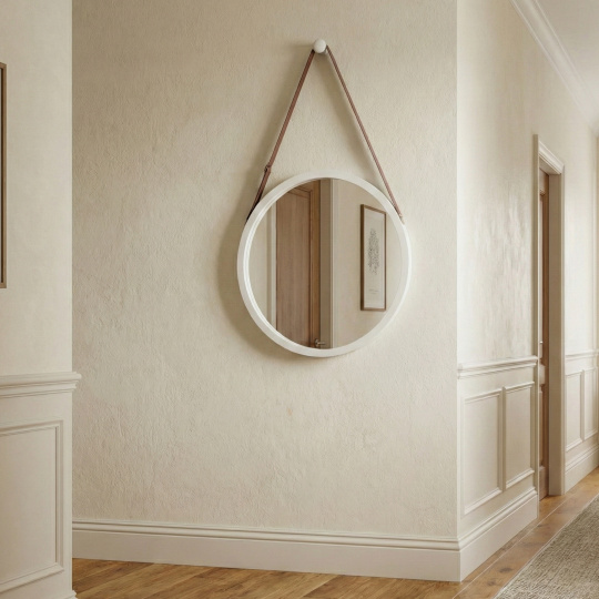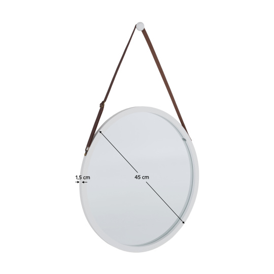 Jednoduché zrcadlo s bambusovým rámem LEMI 1 Materiál: lakovaný bambus / sklo Barva: bílá Rozměry zrcadla (ŠxHxV) 45x1,5x45 cm Tloušťka skla: 3 mm Dodávaná s dřevěným háčkem. Zavěšení zrcadla: úchytka z hnědé ekokůže Dodávané v monte.