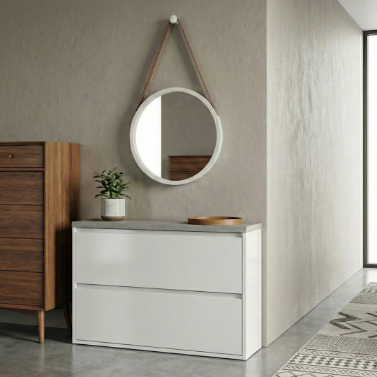 Materiál: DTD laminovaná Barva: bílá Rozměry (ŠxHxV): 140x23x30 cm Tloušťka materiálu korpus: 16 cm moderní styl Dodávané v demontu Hmotnost: 9.2kg