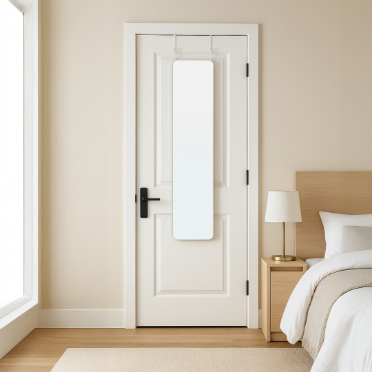 Materiál: hliník/kov/sklo Barva: bílá Rozměry (ŠxHxV): 29x1,5x119 cm Dodáváno s háčky na dveře Délka háčku: 35,5 cm Vhodné na dveře o maximální tloušťce: 4,5 cm Nosnost háčku: 10 kg Možnost přizpůsobit výšku dle vašich potřeb Elegantní Dodáváno v demontu