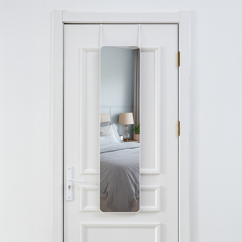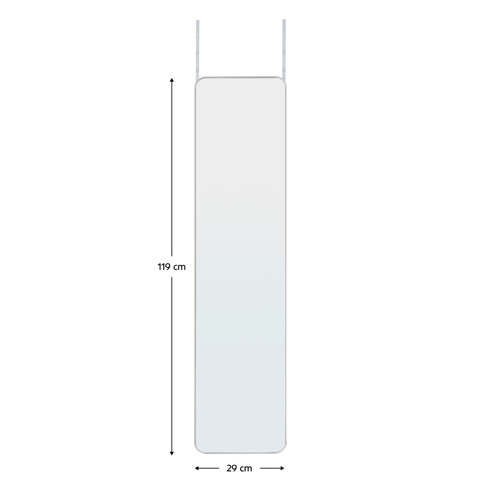 Materiál: hliník/kov/sklo Barva: bílá Rozměry (ŠxHxV): 29x1,5x119 cm Dodáváno s háčky na dveře Délka háčku: 35,5 cm Vhodné na dveře o maximální tloušťce: 4,5 cm Nosnost háčku: 10 kg Možnost přizpůsobit výšku dle vašich potřeb Elegantní Dodáváno v demontu