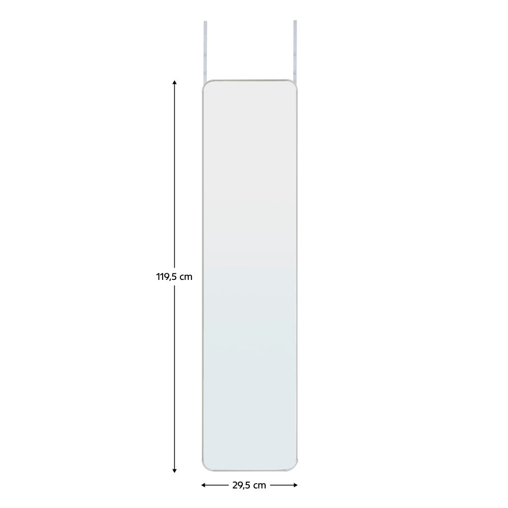 Materiál: hliník/kov/sklo Barva: bílá Rozměry (ŠxHxV): 29,5x1,5x119 cm Dodáváno s háčky na dveře Délka háčku: 35,5 cm Vhodné na dveře o maximální tloušťce: 4,5 cm Nosnost háčku: 10 kg Možnost přizpůsobit výšku dle vašich potřeb Elegantní Dodáváno v demontu