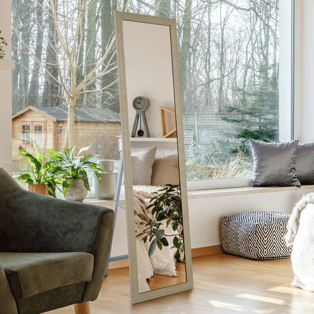 Materiál stojan: kov Barva: bílá Materiál rám: plast Barva: béžová Rozměry (ŠxV): 40x150 cm elegantní se stojanem Dodávané v demontu