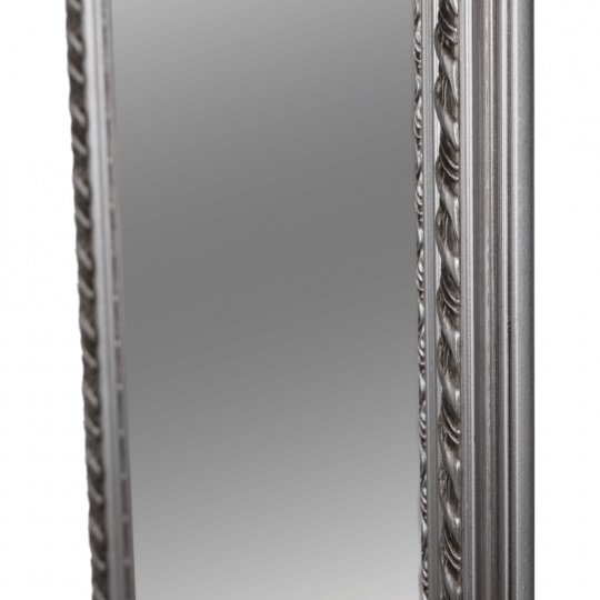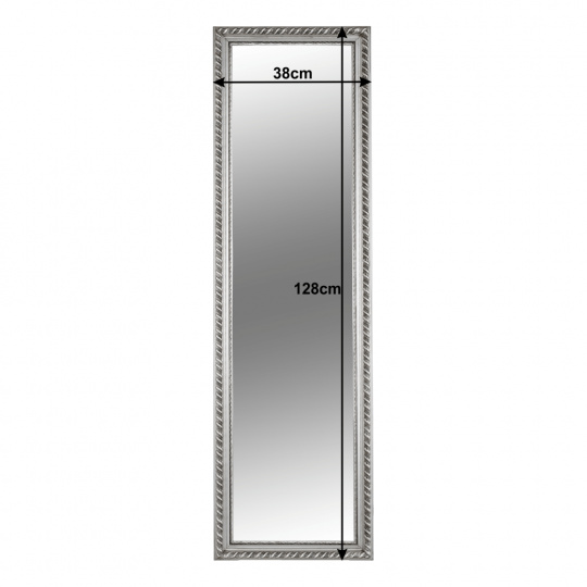 Elegantní zrcadlo s dřevěným rámem stříbrné barvy. Rozměry zrcadla (ŠxV) 38x128 cm.