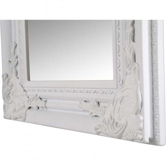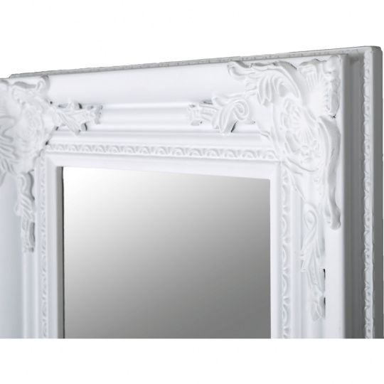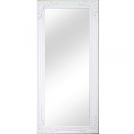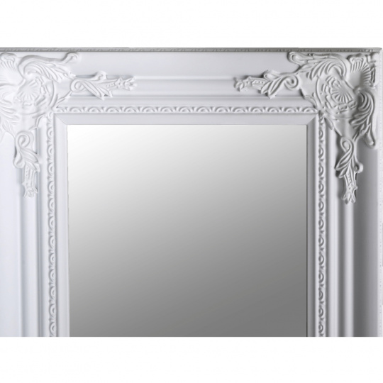 Elegantní zrcadlo s dřevěným rámem bílé barvy. Rozměry vnitřní části zrcadla (ŠxV): 78x108 cm Hmotnost: 10kg